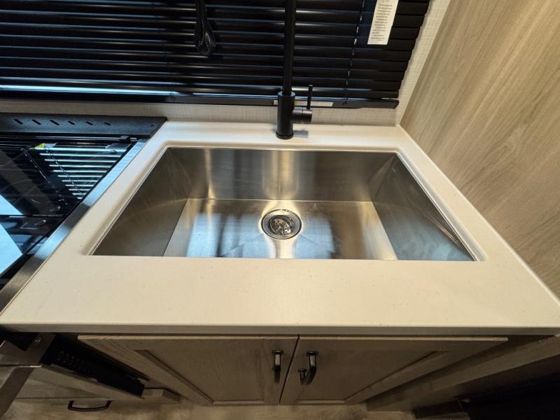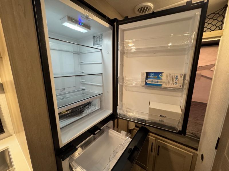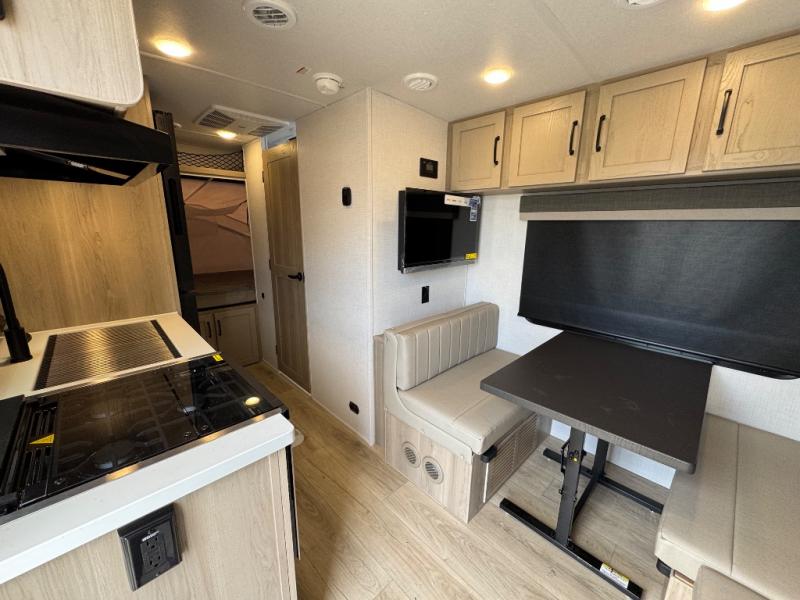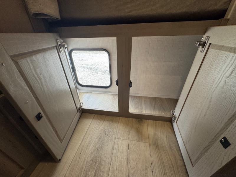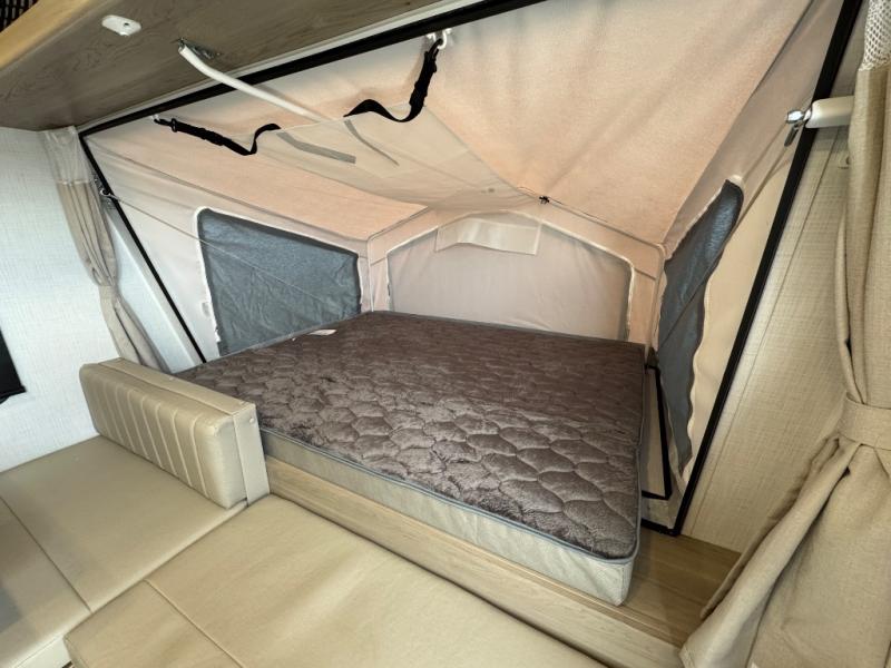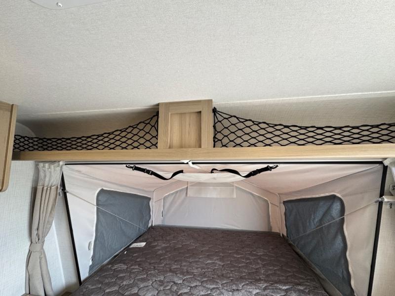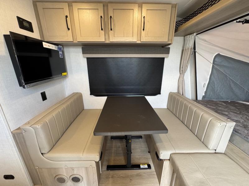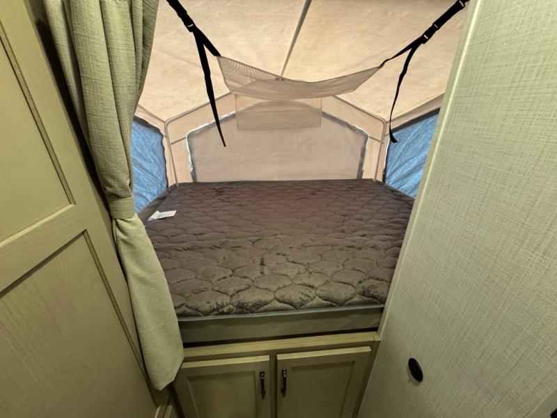 This expandable travel trailer is perfect for camping trips to your favorite park. You will find two queen tent end beds for cozy sleeping space plus a 39" booth dinette that will double as dining and additional sleeping space. There is also an entryway bench so you can easily pull your boots on for hiking. The three burner gas cooktop and microwave oven will let you make meals each day, and the 12V refrigerator will keep your food fresh. There is even a pantry/wardrobe that can store dry goods and clothes. Head outside to find Solid Step entry steps, an exterior griddle, a 12' power awning with LED lights and exterior storage!