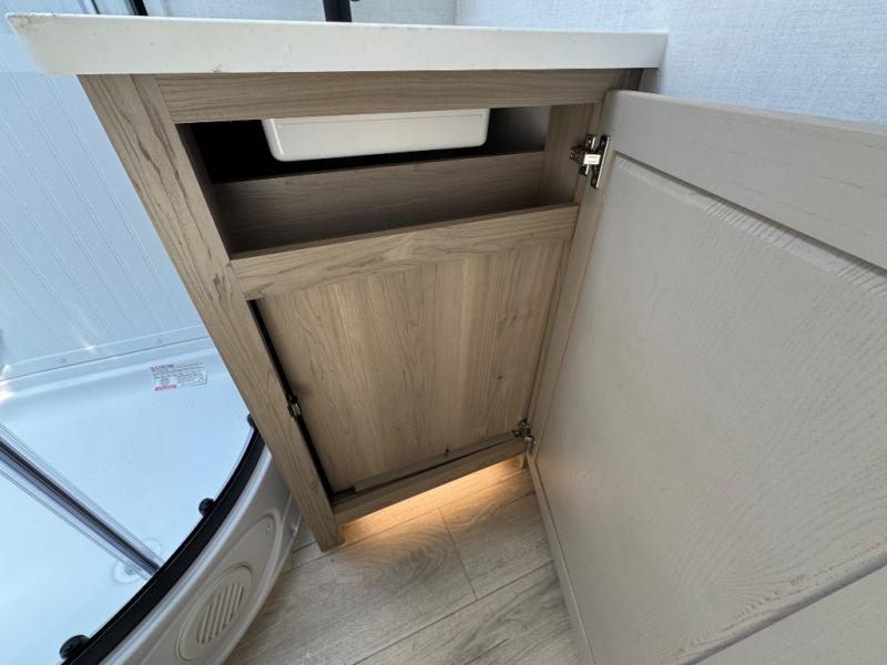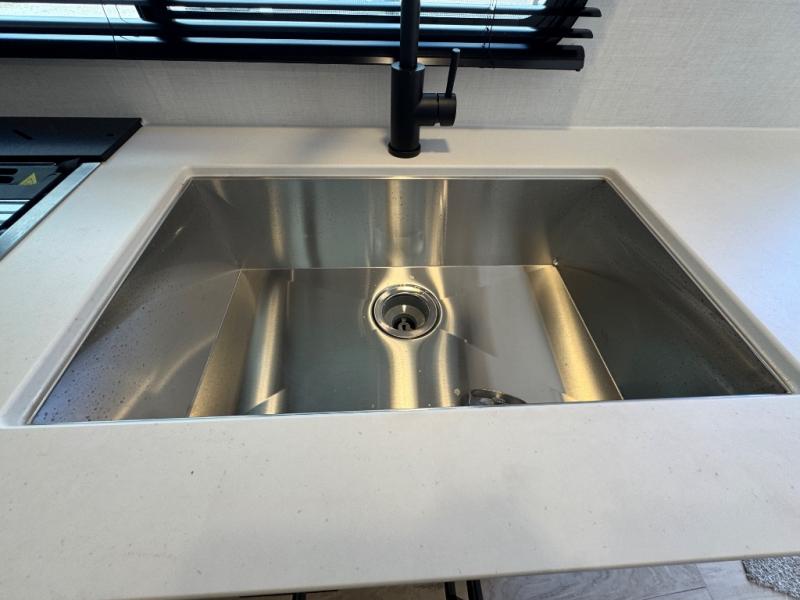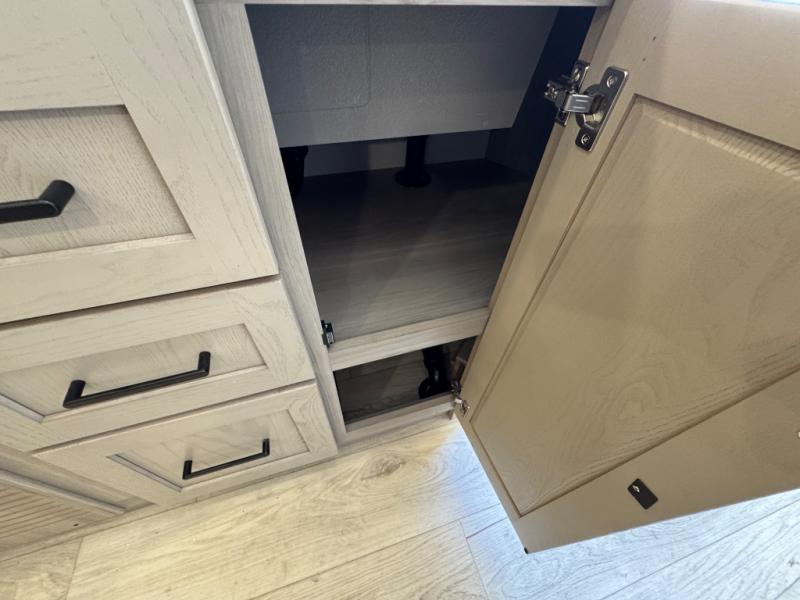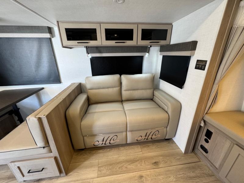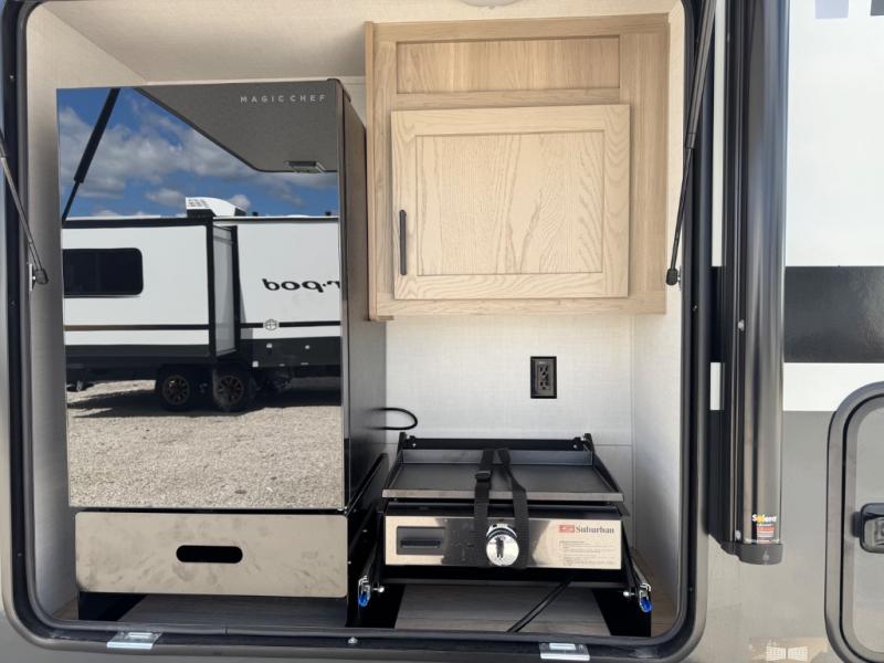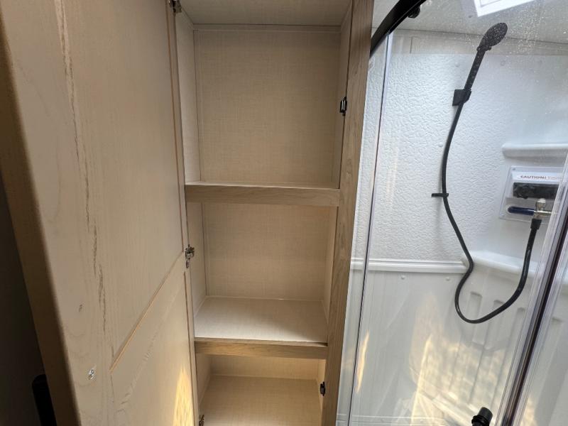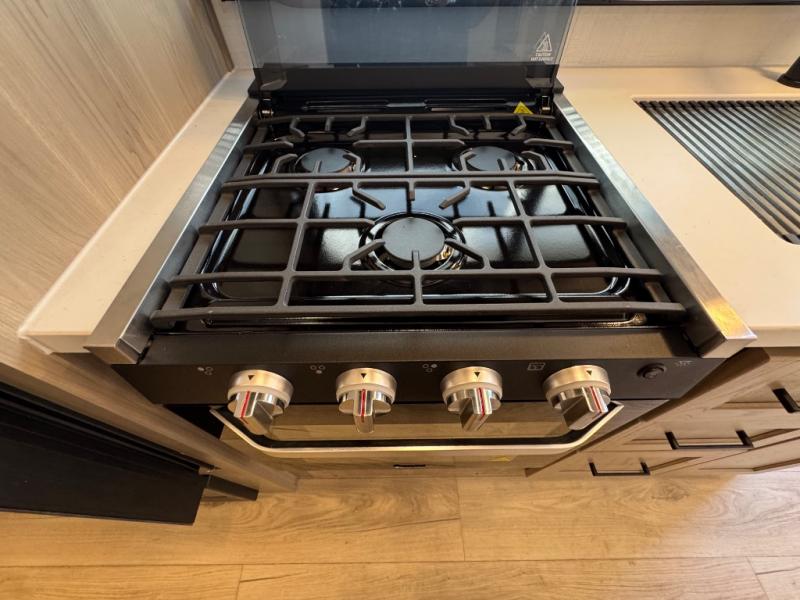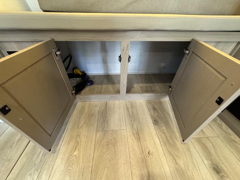 This expandable includes a large slide out that will make you feel right at home, so come take a look! The LED TV and fireplace is right across from the hide-a-bed sofa for easy viewing, and there is a booth dinette to dine together. The chef of the family can cook indoors on the three burner cooktop, or outdoors on the exterior griddle. Tuck your belongings in the overhead shelves, and snacks can go in the pantry. Don't forget about the exterior storage for your larger camp gear!