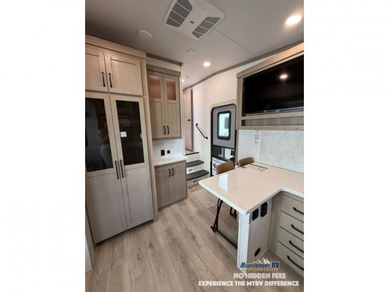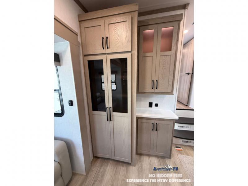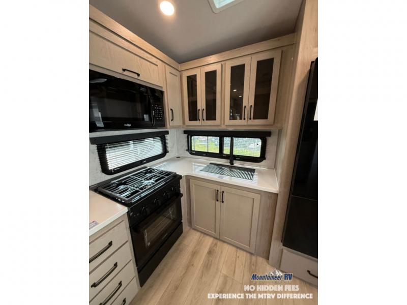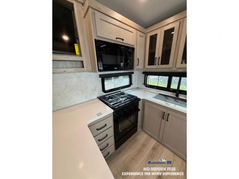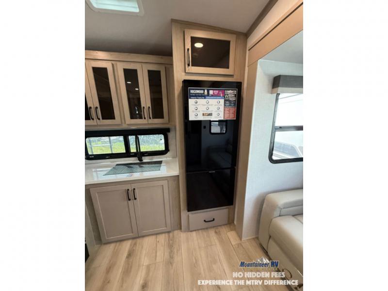 With any Rockwood Signature fifth wheel or travel trailer by Forest River RV, you will enjoy superior construction that includes laminated white fiberglass sidewalls, a radius roof with vaulted interior ceilings, plus radiant foil insulation and an enclosed underbelly for use in all types of weather. Some convenient exterior features include Keyed Alike locks, a rear ladder, a 200W solar panel, and a tire pressure monitor system with a monitor for added safety. The interior offers a One Touch OneControl panel with WeRV app control, for lights, awning, slides, water heater and more, and the Air 360+ omnidirectional antenna with WiFi prep lets you work while away from home if needed. You will also appreciate the interior vaulted ceilings, residential soft close doors and drawers, solid surface kitchen countertops, and designer kitchen backsplash!