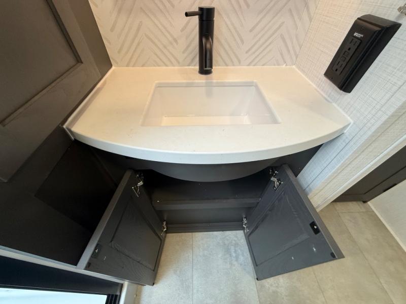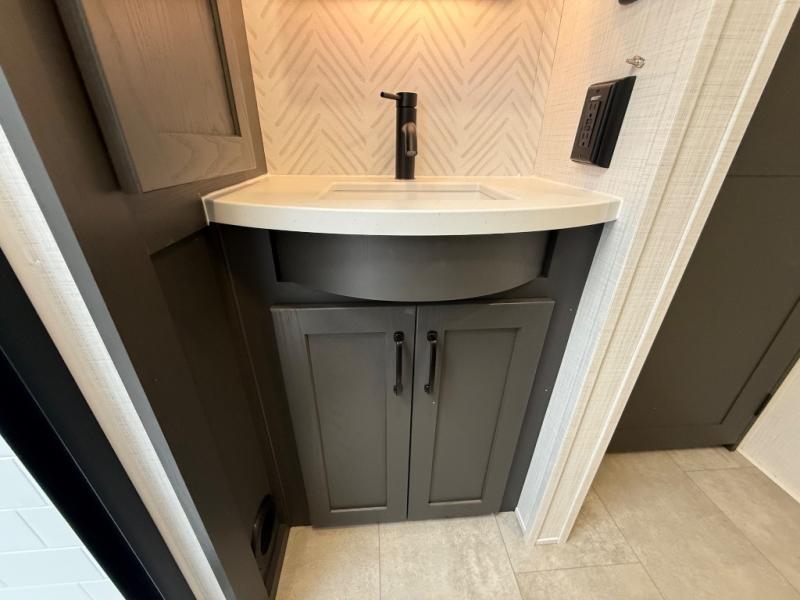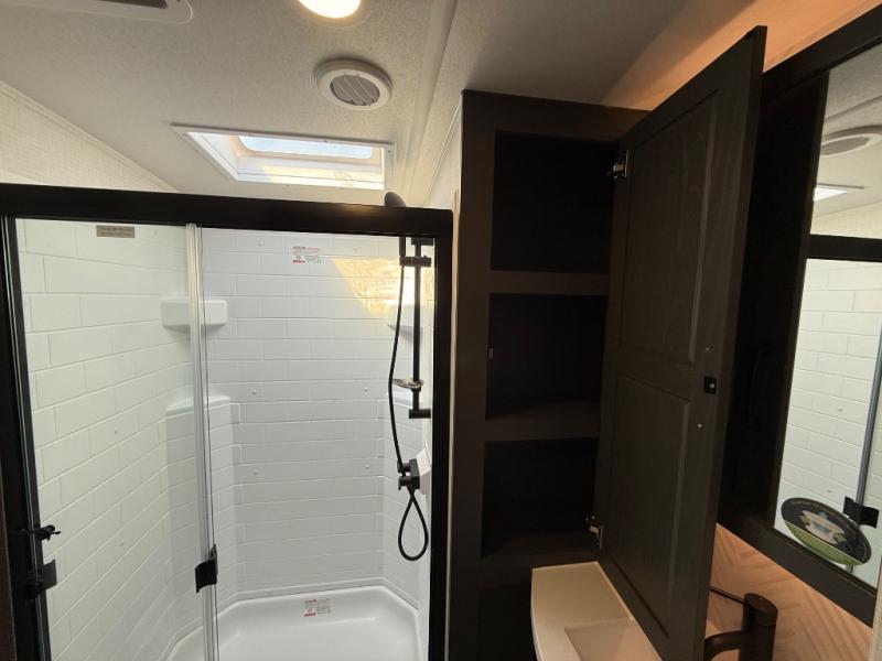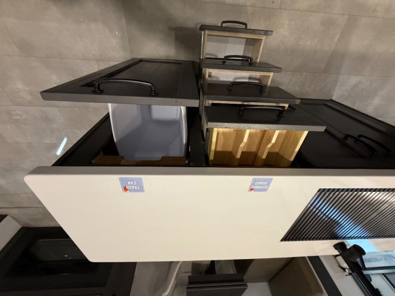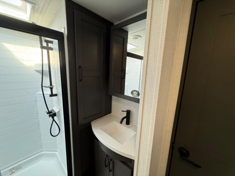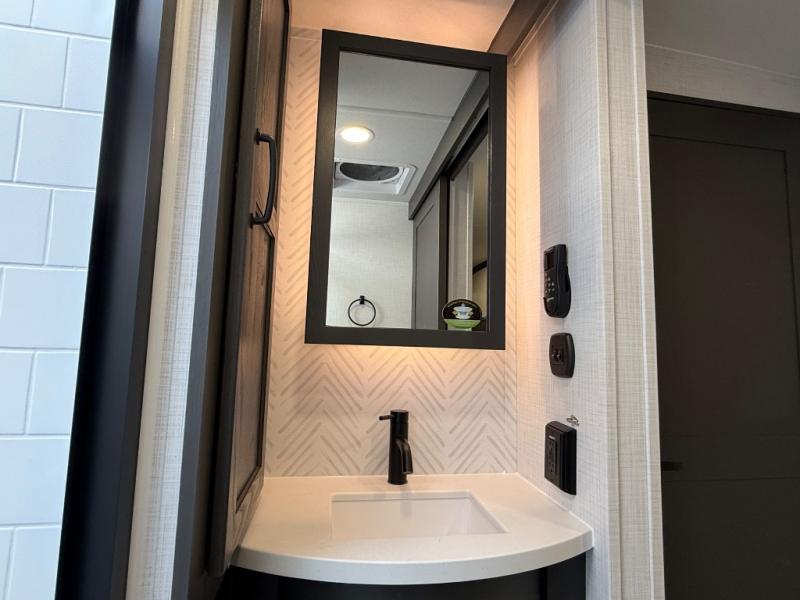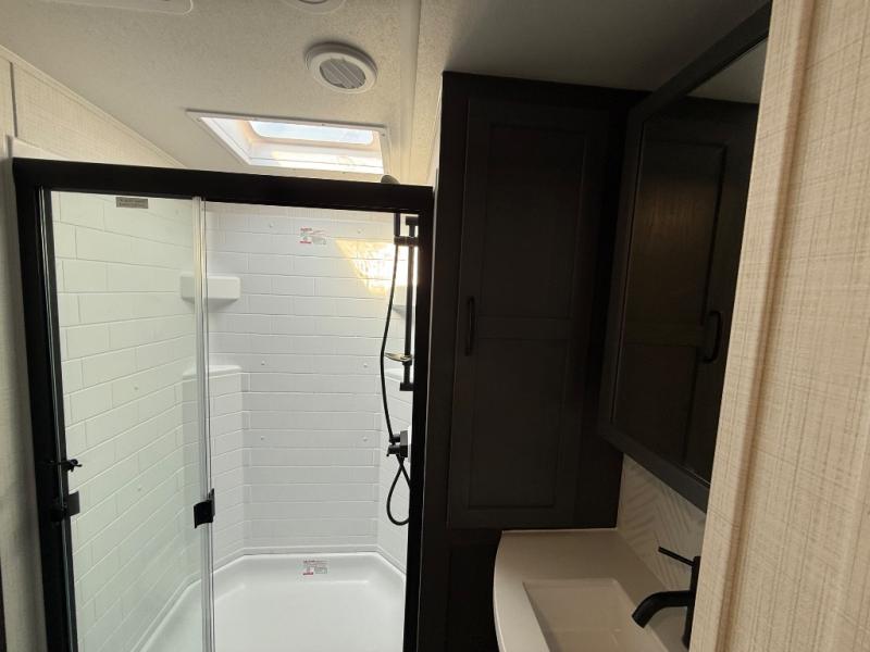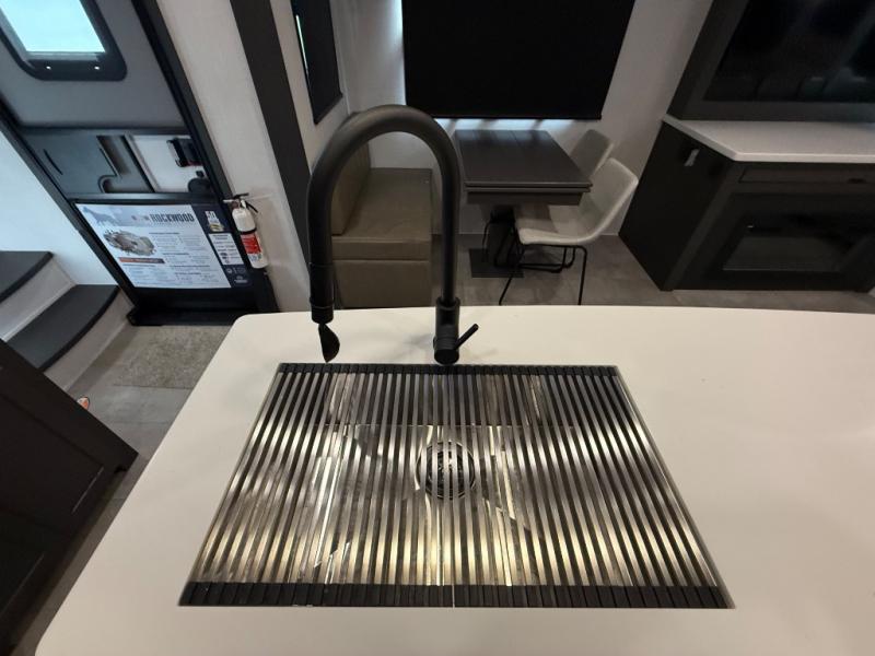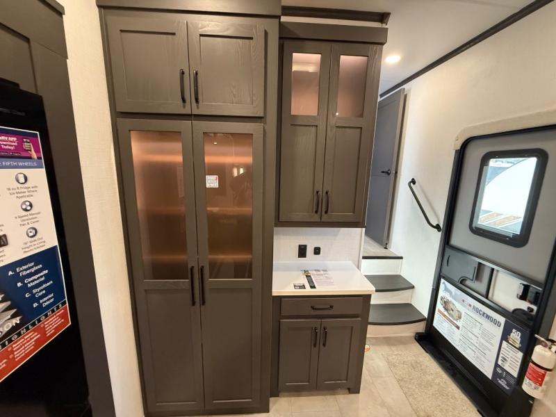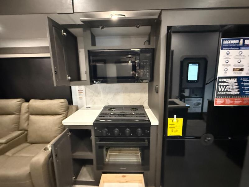 With any Rockwood Signature fifth wheel or travel trailer by Forest River RV, you will enjoy superior construction that includes laminated white fiberglass sidewalls, a radius roof with vaulted interior ceilings, plus radiant foil insulation and an enclosed underbelly for use in all types of weather. Some convenient exterior features include Keyed Alike locks, a rear ladder, a 200W solar panel, and a tire pressure monitor system with a monitor for added safety. The interior offers a One Touch OneControl panel with WeRV app control, for lights, awning, slides, water heater and more, and the Air 360+ omnidirectional antenna with WiFi prep lets you work while away from home if needed. You will also appreciate the interior vaulted ceilings, residential soft close doors and drawers, solid surface kitchen countertops, and designer kitchen backsplash!