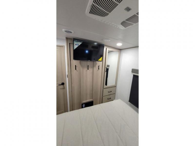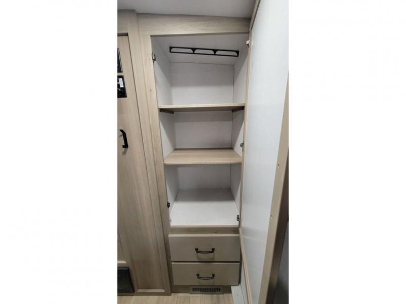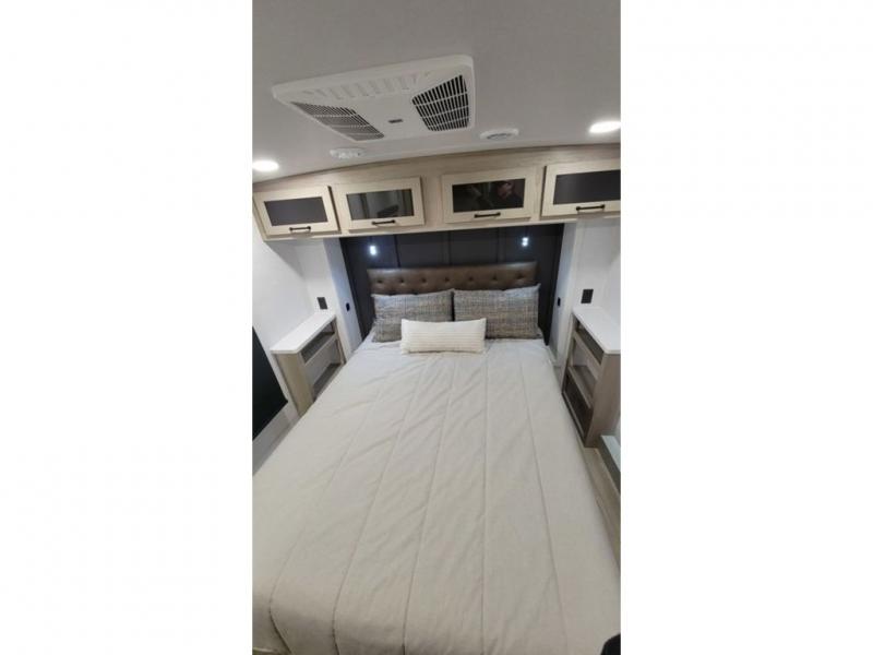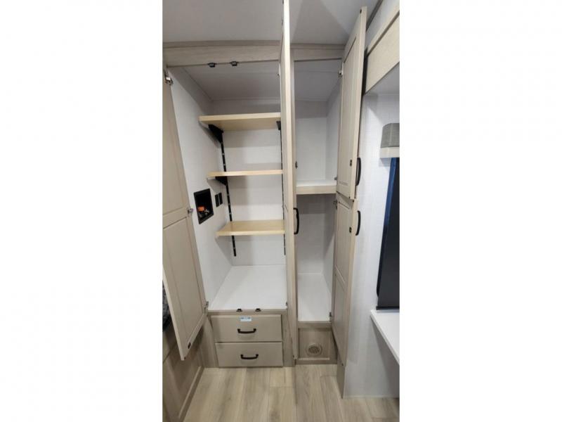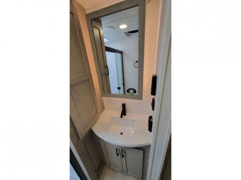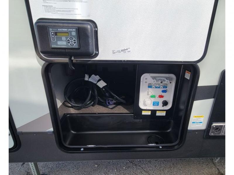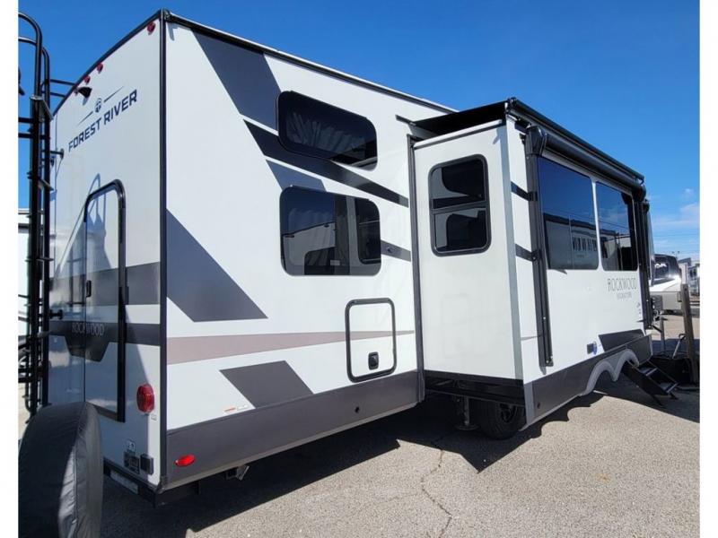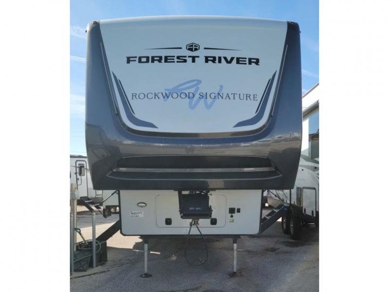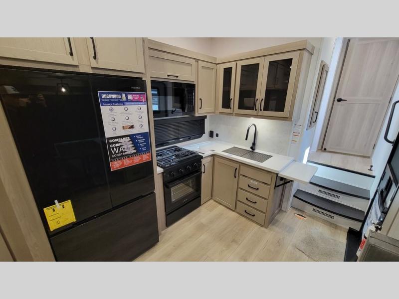 With any Rockwood Signature fifth wheel or travel trailer by Forest River RV, you will enjoy superior construction that includes laminated white fiberglass sidewalls, a radius roof with vaulted interior ceilings, plus radiant foil insulation and an enclosed underbelly for use in all types of weather. Some convenient exterior features include Keyed Alike locks, a rear ladder, a 200W solar panel, and a tire pressure monitor system with a monitor for added safety. The interior offers a One Touch OneControl panel with WeRV app control, for lights, awning, slides, water heater and more, and the Air 360+ omnidirectional antenna with WiFi prep lets you work while away from home if needed. You will also appreciate the interior vaulted ceilings, residential soft close doors and drawers, solid surface kitchen countertops, and designer kitchen backsplash!