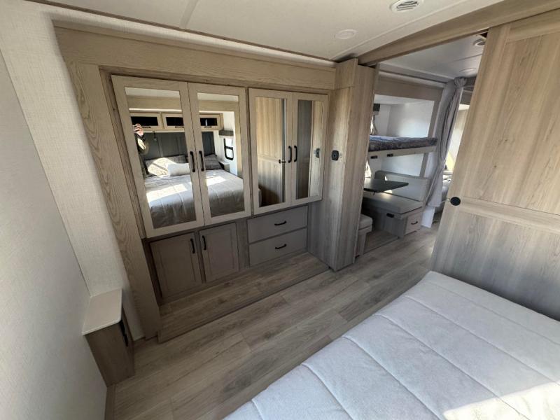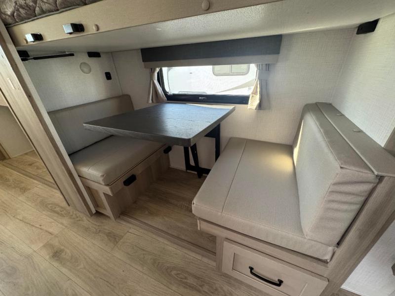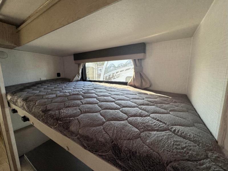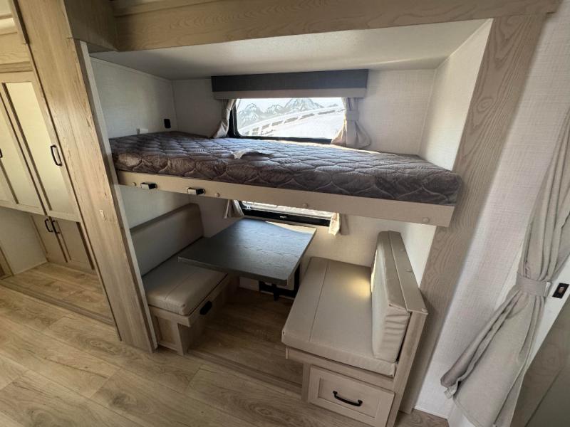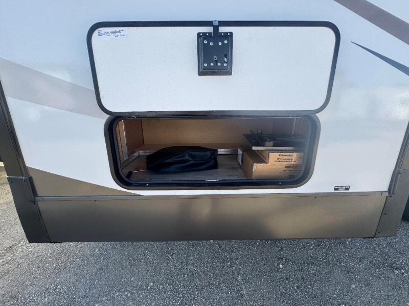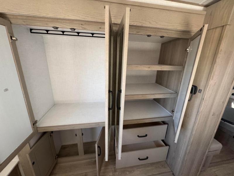 You will love this Signature model with front kitchen including countertop seating for two, plus all of the amenities you need to make meals while you are camped. You will also love the outside griddle tucked under the 21' awning for morning pancakes or to fry up your bacon to keep the strong smell outside. Relax on 67" theater seats with a TV opposite just to the right of the entry door. At night, head to the private bedroom with space saving sliding door for a great night's sleep on the queen bed, and keep all of your clothing neatly tucked away in the wardrobe/linen closet opposite. These are both within the large slide out, along with the 32" dinette and flip-up bunk for the little ones. The three exterior storage compartments allow you to take along all that you might need without worrying about having enough room.