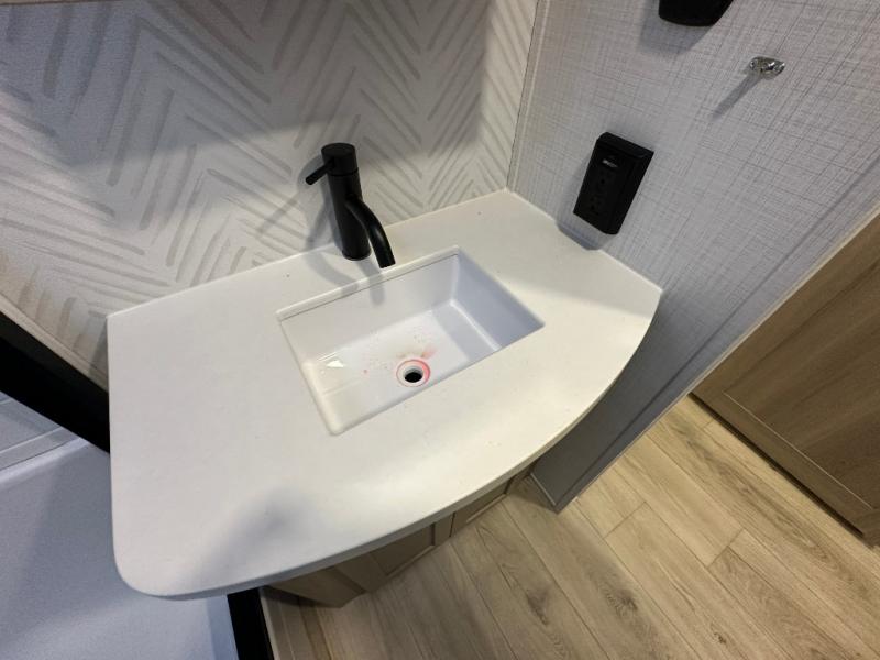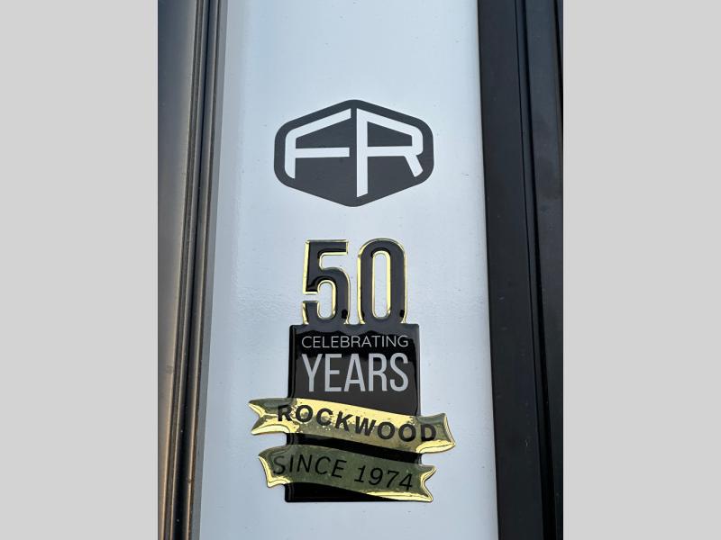 With any Rockwood Signature fifth wheel or travel trailer by Forest River RV, you will enjoy superior construction that includes laminated white fiberglass sidewalls, a radius roof with vaulted interior ceilings, plus radiant foil insulation and an enclosed underbelly for use in all types of weather. Some convenient exterior features include Keyed Alike locks, a rear ladder, a 200W solar panel, and a tire pressure monitor system with a monitor for added safety. The interior offers a One Touch OneControl panel with WeRV app control, for lights, awning, slides, water heater and more, and the Air 360+ omnidirectional antenna with WiFi prep lets you work while away from home if needed. You will also appreciate the interior vaulted ceilings, residential soft close doors and drawers, solid surface kitchen countertops, and designer kitchen backsplash!