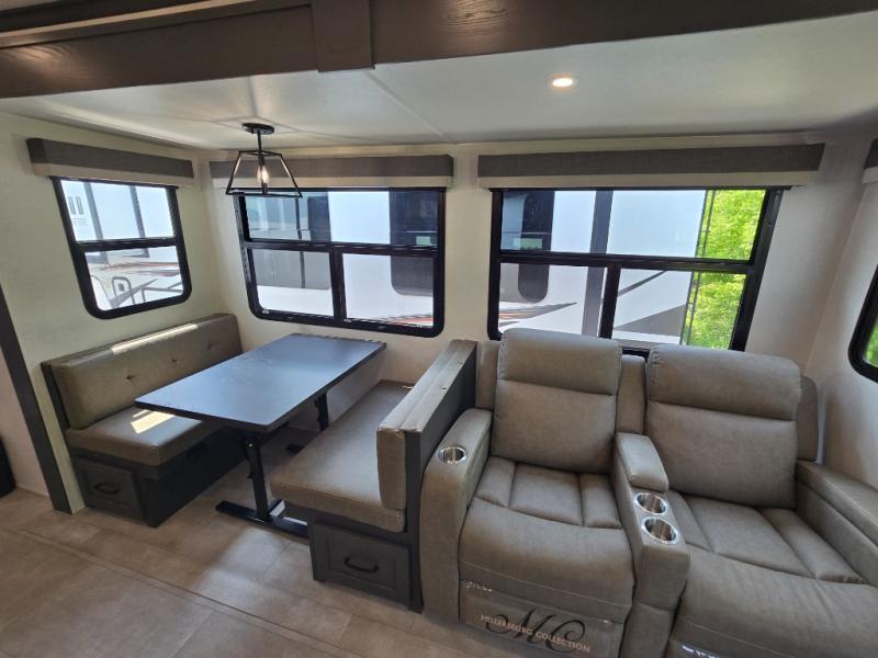 With any Rockwood Signature fifth wheel or travel trailer by Forest River RV, you will enjoy superior construction that includes laminated white fiberglass sidewalls, a radius roof with vaulted interior ceilings, plus radiant foil insulation and an enclosed underbelly for use in all types of weather. Some convenient exterior features include Keyed Alike locks, a rear ladder, a 200W solar panel, and a tire pressure monitor system with a monitor for added safety. The interior offers a One Touch OneControl panel with WeRV app control, for lights, awning, slides, water heater and more, and the Air 360+ omnidirectional antenna with WiFi prep lets you work while away from home if needed. You will also appreciate the interior vaulted ceilings, residential soft close doors and drawers, solid surface kitchen countertops, and designer kitchen backsplash!