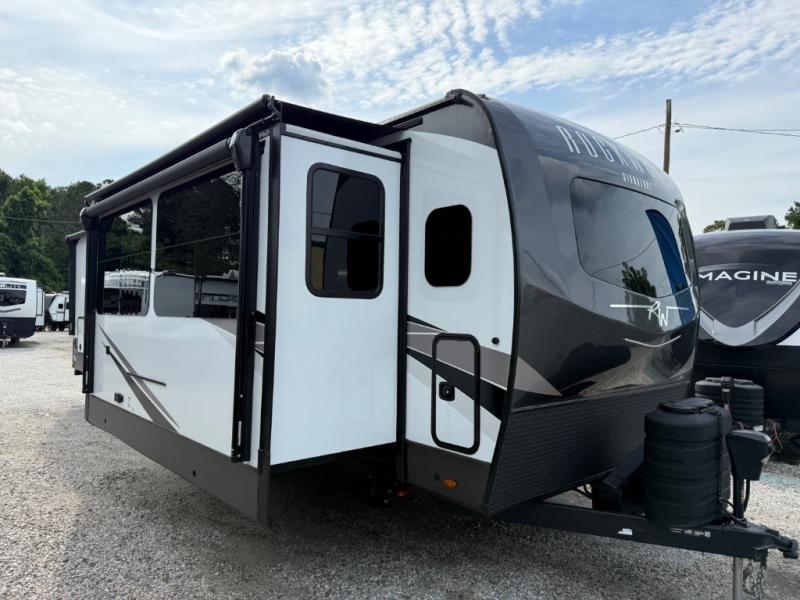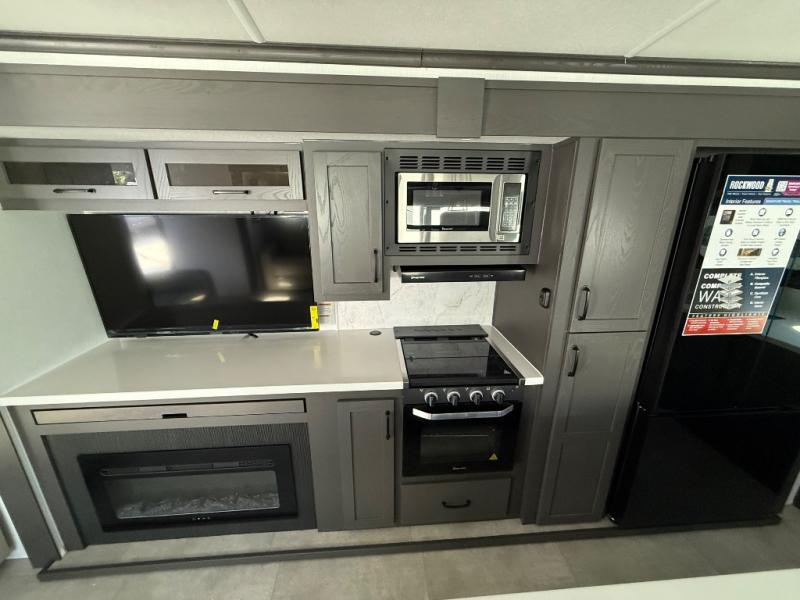 With any Rockwood Signature fifth wheel or travel trailer by Forest River RV, you will enjoy superior construction that includes laminated white fiberglass sidewalls, a radius roof with vaulted interior ceilings, plus radiant foil insulation and an enclosed underbelly for use in all types of weather. Some convenient exterior features include Keyed Alike locks, a rear ladder, a 200W solar panel, and a tire pressure monitor system with a monitor for added safety. The interior offers a One Touch OneControl panel with WeRV app control, for lights, awning, slides, water heater and more, and the Air 360+ omnidirectional antenna with WiFi prep lets you work while away from home if needed. You will also appreciate the interior vaulted ceilings, residential soft close doors and drawers, solid surface kitchen countertops, and designer kitchen backsplash!