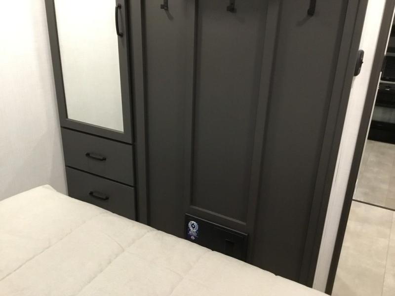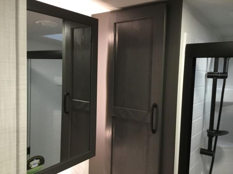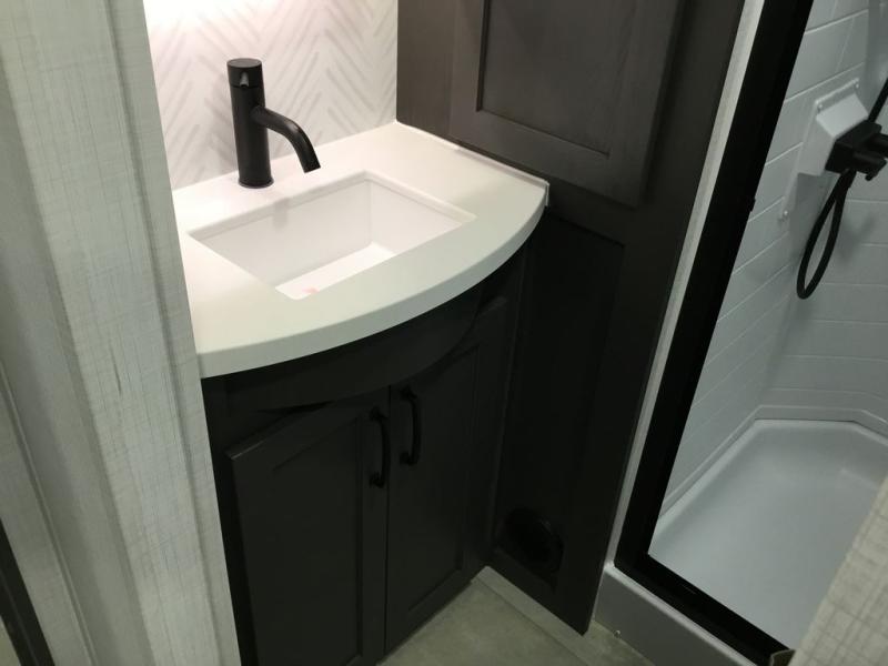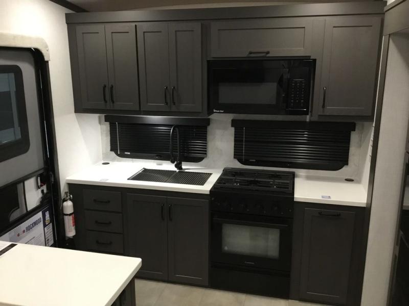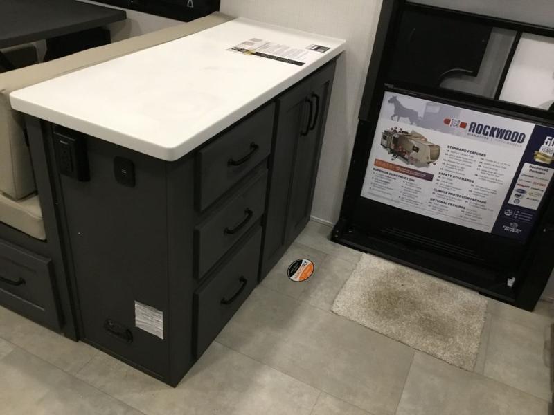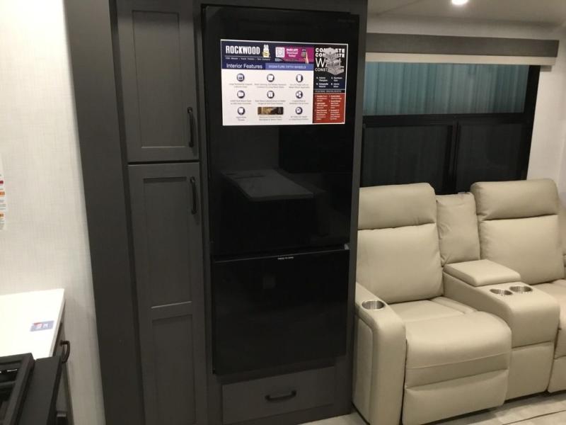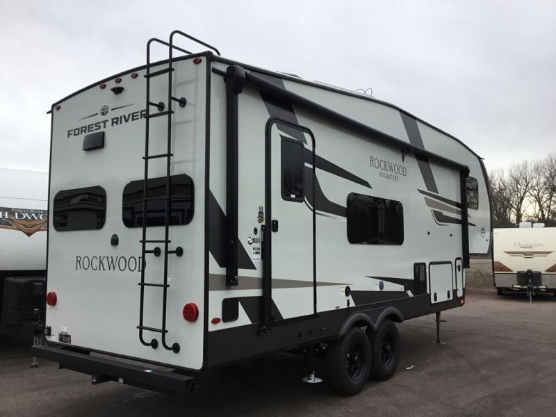 With any Rockwood Signature fifth wheel or travel trailer by Forest River RV, you will enjoy superior construction that includes laminated white fiberglass sidewalls, a radius roof with vaulted interior ceilings, plus radiant foil insulation and an enclosed underbelly for use in all types of weather. Some convenient exterior features include Keyed Alike locks, a rear ladder, a 200W solar panel, and a tire pressure monitor system with a monitor for added safety. The interior offers a One Touch OneControl panel with WeRV app control, for lights, awning, slides, water heater and more, and the Air 360+ omnidirectional antenna with WiFi prep lets you work while away from home if needed. You will also appreciate the interior vaulted ceilings, residential soft close doors and drawers, solid surface kitchen countertops, and designer kitchen backsplash!