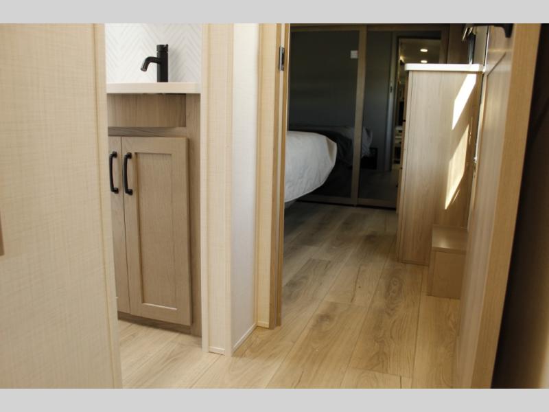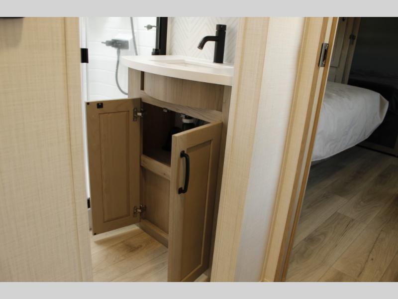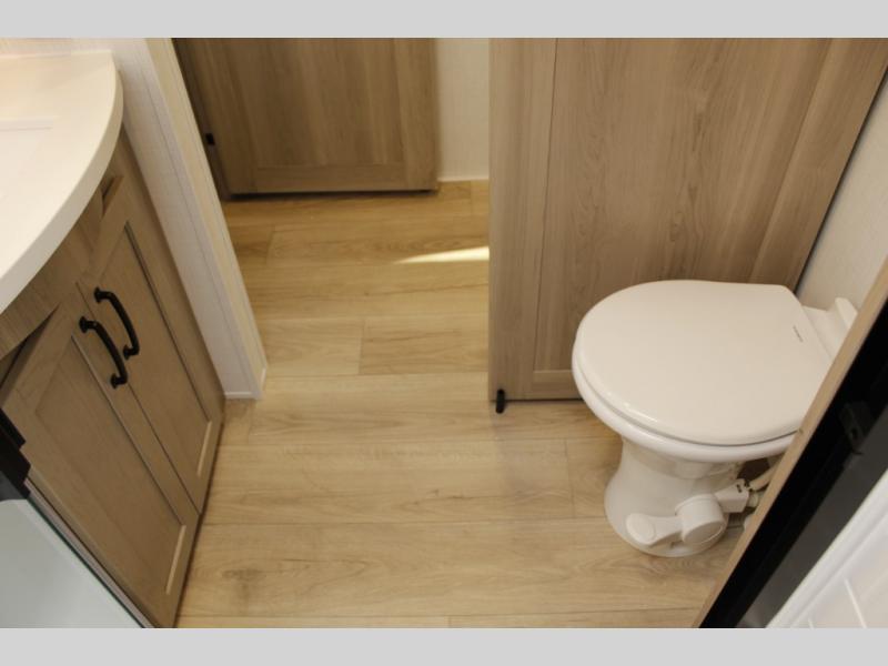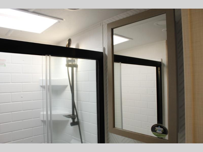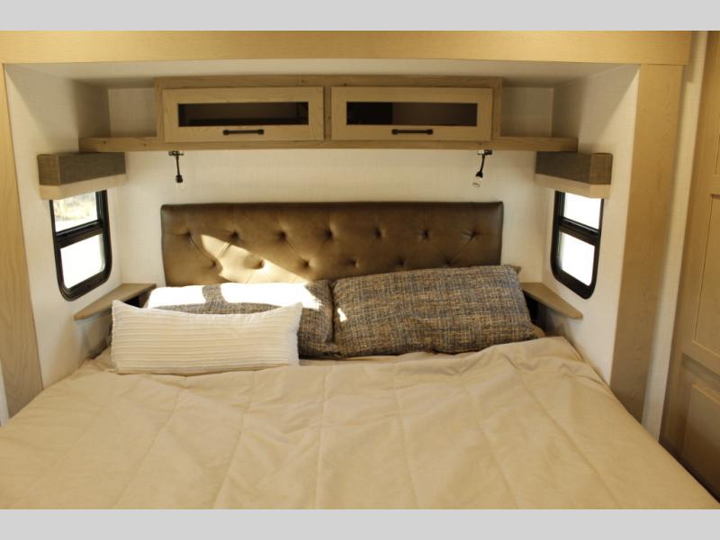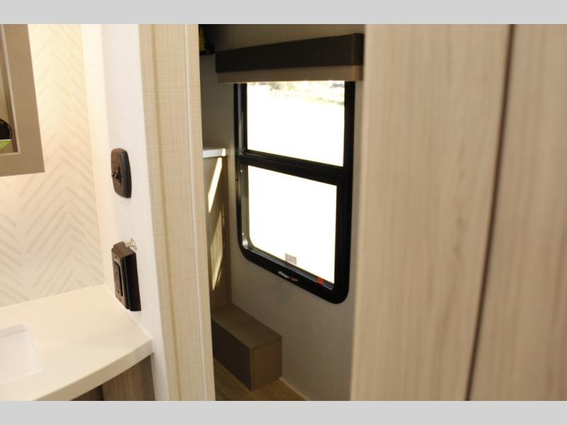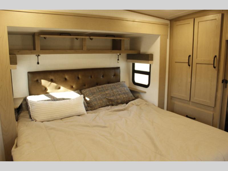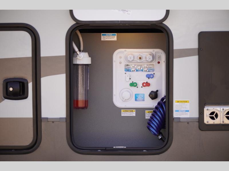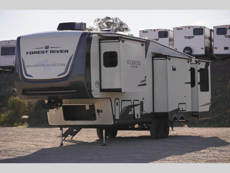 With any Rockwood Signature fifth wheel or travel trailer by Forest River RV, you will enjoy superior construction that includes laminated white fiberglass sidewalls, a radius roof with vaulted interior ceilings, plus radiant foil insulation and an enclosed underbelly for use in all types of weather. Some convenient exterior features include Keyed Alike locks, a rear ladder, a 200W solar panel, and a tire pressure monitor system with a monitor for added safety. The interior offers a One Touch OneControl panel with WeRV app control, for lights, awning, slides, water heater and more, and the Air 360+ omnidirectional antenna with WiFi prep lets you work while away from home if needed. You will also appreciate the interior vaulted ceilings, residential soft close doors and drawers, solid surface kitchen countertops, and designer kitchen backsplash!