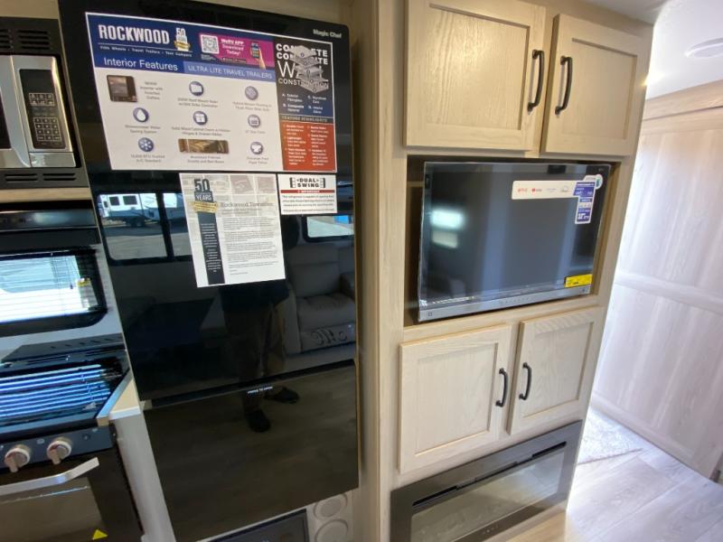 Each Rockwood Ultra Lite travel trailer by Forest River includes superior construction with a high gloss front cap, laminated white fiberglass sidewalls, and tinted frameless windows for a sleek look. The torsion axle, Rubber-Ryde suspension will make towing smooth and hassle-free, along with the nitrogen filled, Goodyear Endurance tires and the tire pressure monitor system. Interior comforts include designer kitchen backsplash, solid wood cabinet doors with hidden hinges, and night roller shades to name a few. Choose a Rockwood Ultra Lite travel trailer today!