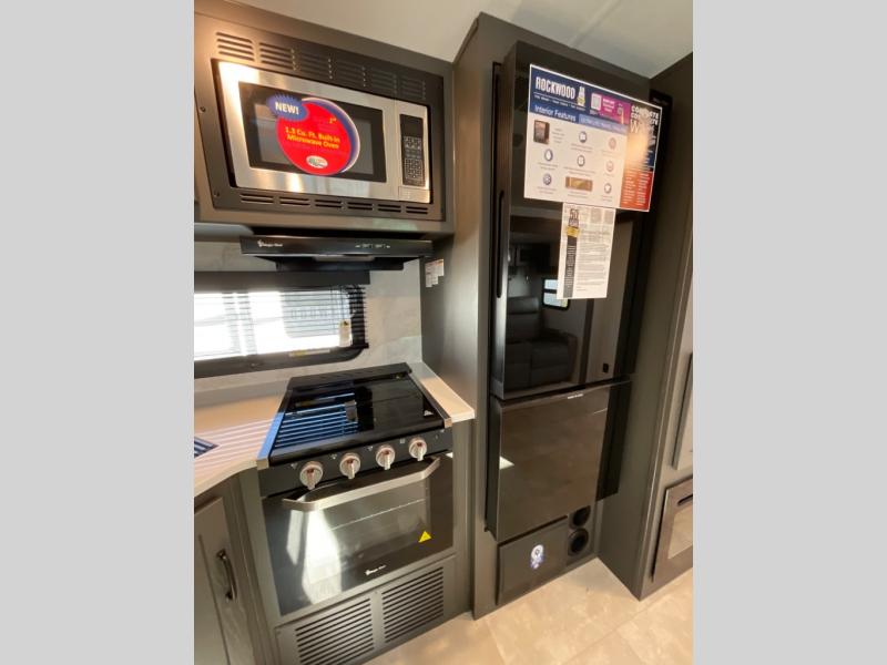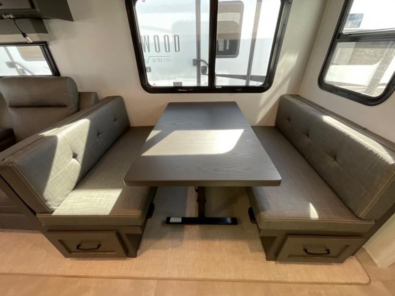 Each Rockwood Ultra Lite travel trailer by Forest River includes superior construction with a high gloss front cap, laminated white fiberglass sidewalls, and tinted frameless windows for a sleek look. The torsion axle, Rubber-Ryde suspension will make towing smooth and hassle-free, along with the nitrogen filled, Goodyear Endurance tires and the tire pressure monitor system. Interior comforts include designer kitchen backsplash, solid wood cabinet doors with hidden hinges, and night roller shades to name a few. Choose a Rockwood Ultra Lite travel trailer today!