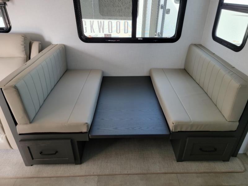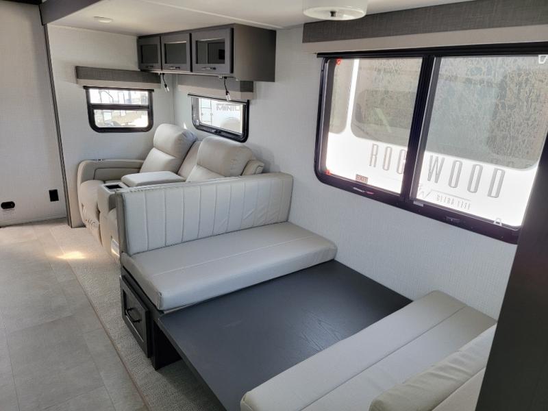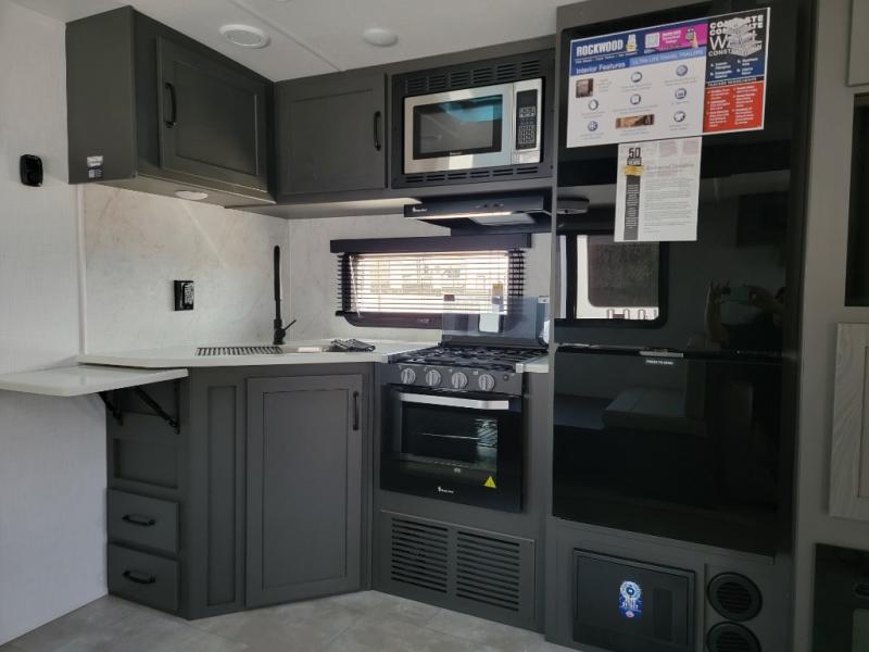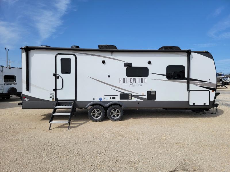 Each Rockwood Ultra Lite travel trailer by Forest River includes superior construction with a high gloss front cap, laminated white fiberglass sidewalls, and tinted frameless windows for a sleek look. The torsion axle, Rubber-Ryde suspension will make towing smooth and hassle-free, along with the nitrogen filled, Goodyear Endurance tires and the tire pressure monitor system. Interior comforts include designer kitchen backsplash, solid wood cabinet doors with hidden hinges, and night roller shades to name a few. Choose a Rockwood Ultra Lite travel trailer today!