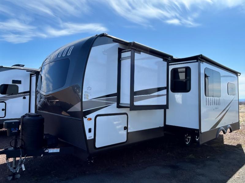 Each Rockwood Ultra Lite travel trailer by Forest River includes superior construction with a high gloss front cap, laminated white fiberglass sidewalls, and tinted frameless windows for a sleek look. The torsion axle, Rubber-Ryde suspension will make towing smooth and hassle-free, along with the nitrogen filled, Goodyear Endurance tires and the tire pressure monitor system. Interior comforts include designer kitchen backsplash, solid wood cabinet doors with hidden hinges, and night roller shades to name a few. Choose a Rockwood Ultra Lite travel trailer today!