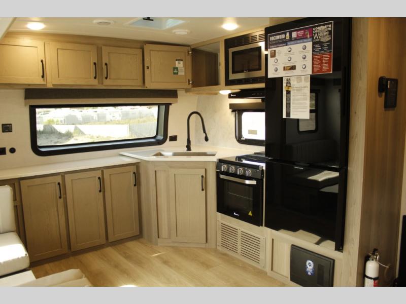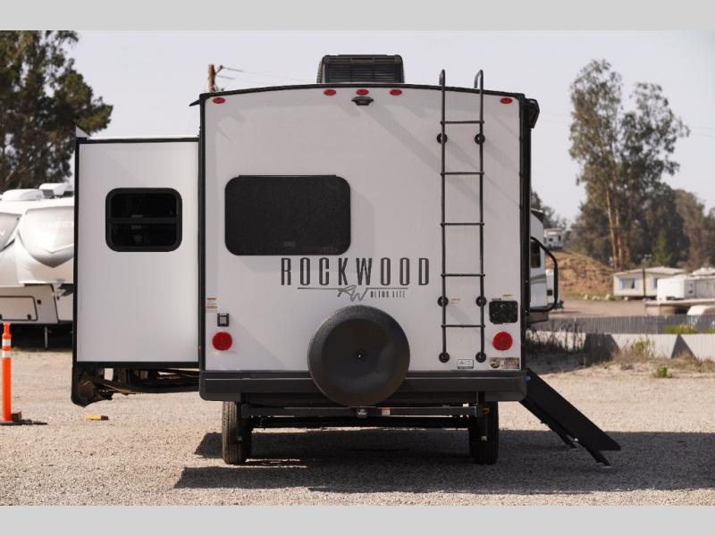 Each Rockwood Ultra Lite travel trailer by Forest River includes superior construction with a high gloss front cap, laminated white fiberglass sidewalls, and tinted frameless windows for a sleek look. The torsion axle, Rubber-Ryde suspension will make towing smooth and hassle-free, along with the nitrogen filled, Goodyear Endurance tires and the tire pressure monitor system. Interior comforts include designer kitchen backsplash, solid wood cabinet doors with hidden hinges, and night roller shades to name a few. Choose a Rockwood Ultra Lite travel trailer today!