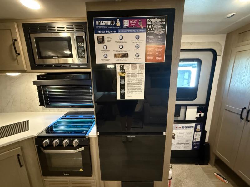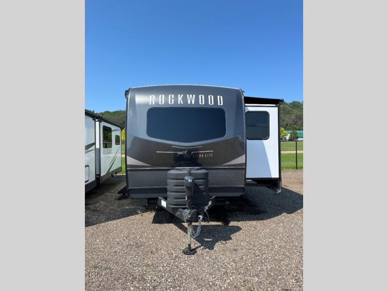 Each Rockwood Ultra Lite travel trailer by Forest River includes superior construction with a high gloss front cap, laminated white fiberglass sidewalls, and tinted frameless windows for a sleek look. The torsion axle, Rubber-Ryde suspension will make towing smooth and hassle-free, along with the nitrogen filled, Goodyear Endurance tires and the tire pressure monitor system. Interior comforts include designer kitchen backsplash, solid wood cabinet doors with hidden hinges, and night roller shades to name a few. Choose a Rockwood Ultra Lite travel trailer today!
