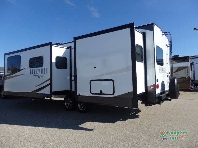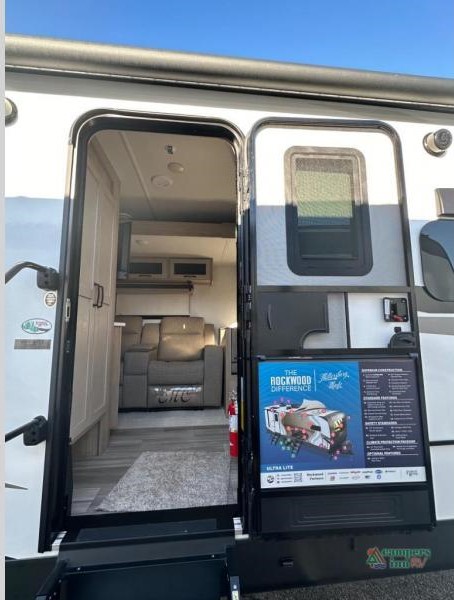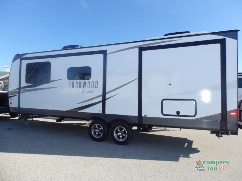 Each Rockwood Ultra Lite travel trailer by Forest River includes superior construction with a high gloss front cap, laminated white fiberglass sidewalls, and tinted frameless windows for a sleek look. The torsion axle, Rubber-Ryde suspension will make towing smooth and hassle-free, along with the nitrogen filled, Goodyear Endurance tires and the tire pressure monitor system. Interior comforts include designer kitchen backsplash, solid wood cabinet doors with hidden hinges, and night roller shades to name a few. Choose a Rockwood Ultra Lite travel trailer today!