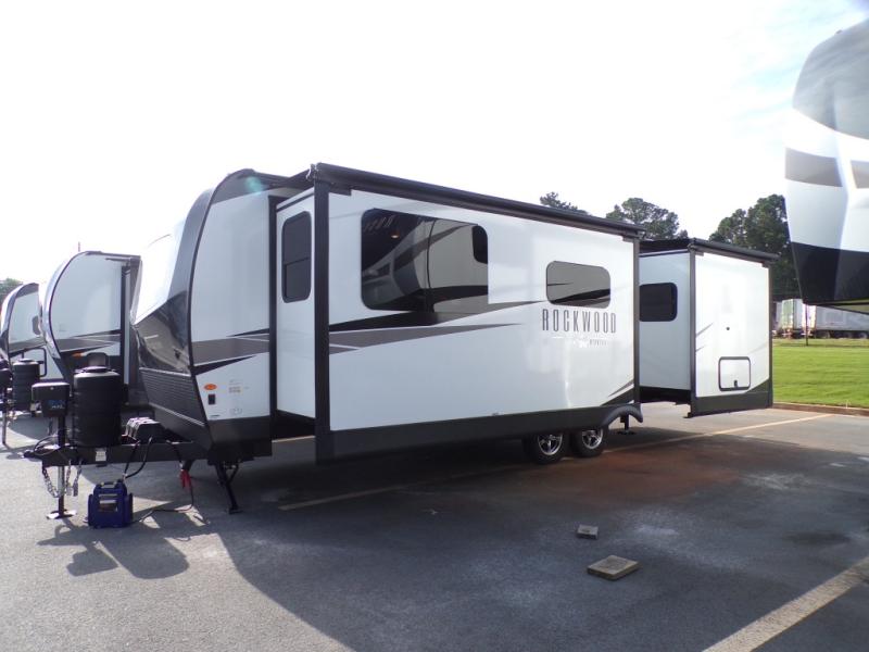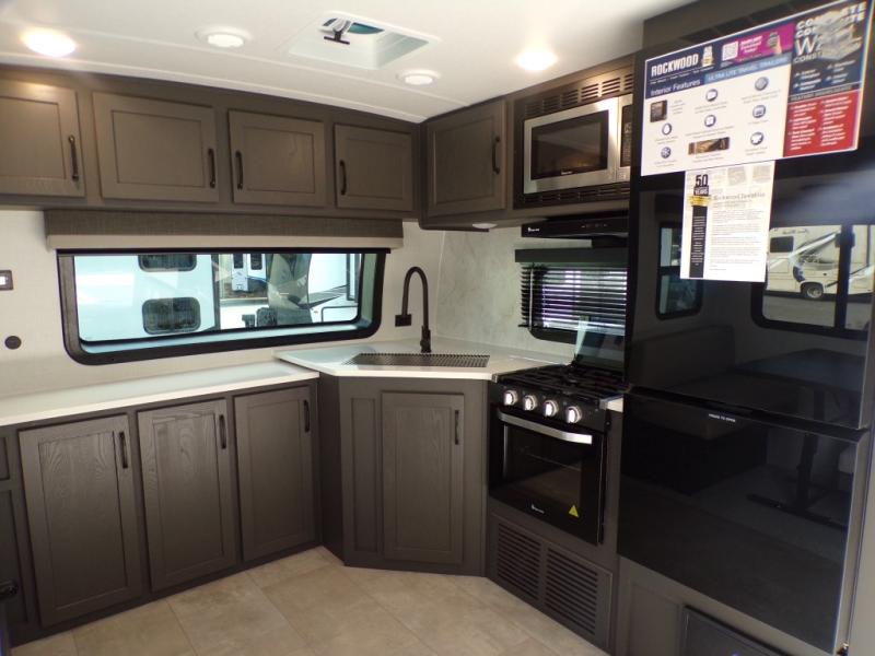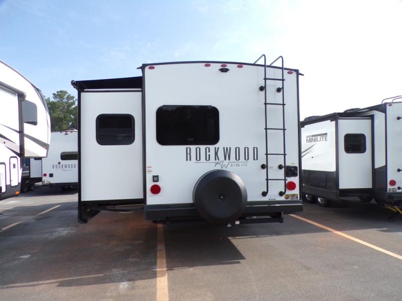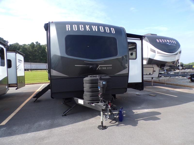 Each Rockwood Ultra Lite travel trailer by Forest River includes superior construction with a high gloss front cap, laminated white fiberglass sidewalls, and tinted frameless windows for a sleek look. The torsion axle, Rubber-Ryde suspension will make towing smooth and hassle-free, along with the nitrogen filled, Goodyear Endurance tires and the tire pressure monitor system. Interior comforts include designer kitchen backsplash, solid wood cabinet doors with hidden hinges, and night roller shades to name a few. Choose a Rockwood Ultra Lite travel trailer today!
