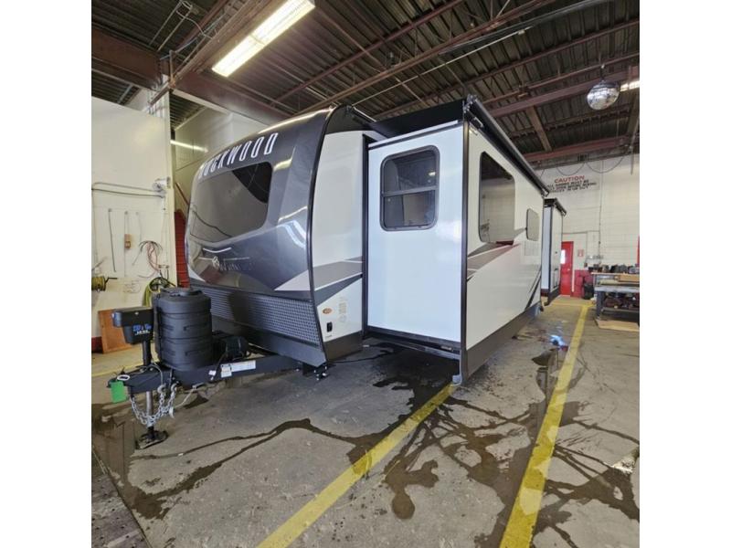 Each Rockwood Ultra Lite travel trailer by Forest River includes superior construction with a high gloss front cap, laminated white fiberglass sidewalls, and tinted frameless windows for a sleek look. The torsion axle, Rubber-Ryde suspension will make towing smooth and hassle-free, along with the nitrogen filled, Goodyear Endurance tires and the tire pressure monitor system. Interior comforts include designer kitchen backsplash, solid wood cabinet doors with hidden hinges, and night roller shades to name a few. Choose a Rockwood Ultra Lite travel trailer today!