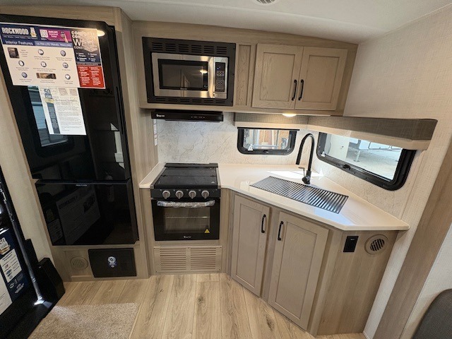 Each Rockwood Ultra Lite travel trailer by Forest River includes superior construction with a high gloss front cap, laminated white fiberglass sidewalls, and tinted frameless windows for a sleek look. The torsion axle, Rubber-Ryde suspension will make towing smooth and hassle-free, along with the nitrogen filled, Goodyear Endurance tires and the tire pressure monitor system. Interior comforts include designer kitchen backsplash, solid wood cabinet doors with hidden hinges, and night roller shades to name a few. Choose a Rockwood Ultra Lite travel trailer today!