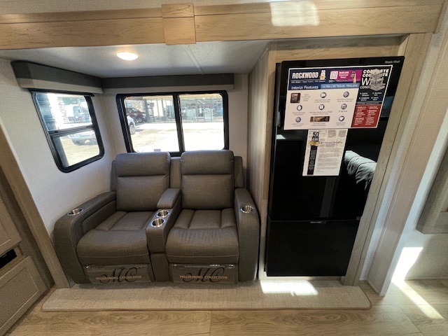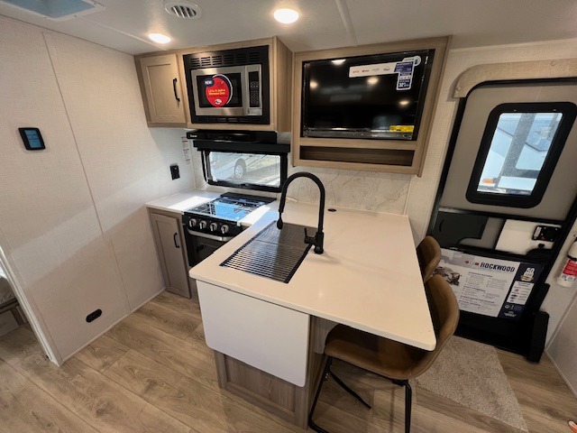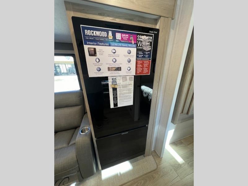 Each Rockwood Ultra Lite travel trailer by Forest River includes superior construction with a high gloss front cap, laminated white fiberglass sidewalls, and tinted frameless windows for a sleek look. The torsion axle, Rubber-Ryde suspension will make towing smooth and hassle-free, along with the nitrogen filled, Goodyear Endurance tires and the tire pressure monitor system. Interior comforts include designer kitchen backsplash, solid wood cabinet doors with hidden hinges, and night roller shades to name a few. Choose a Rockwood Ultra Lite travel trailer today!