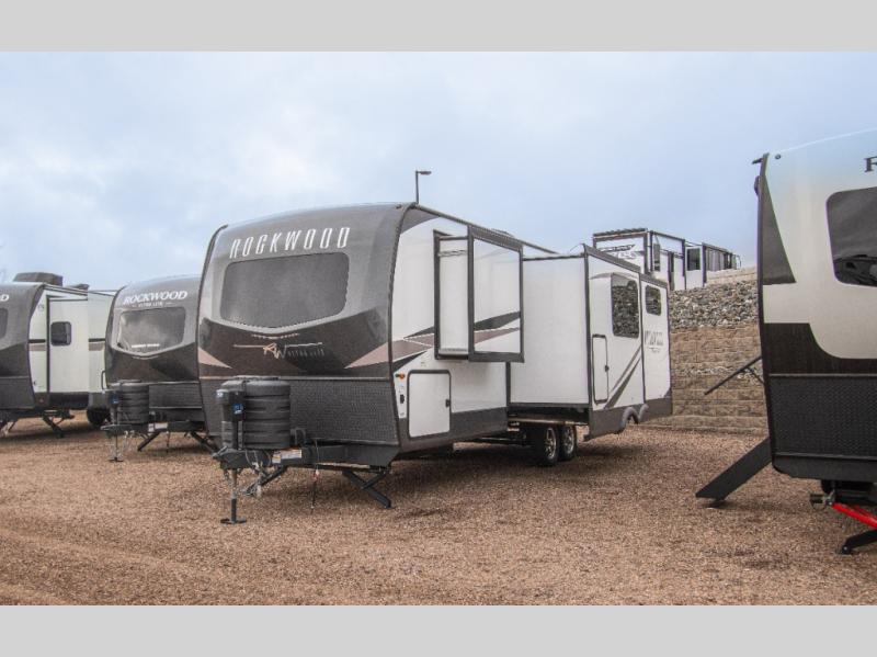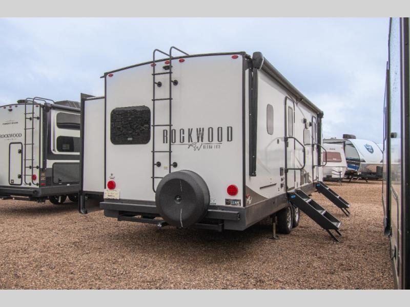 Each Rockwood Ultra Lite travel trailer by Forest River includes superior construction with a high gloss front cap, laminated white fiberglass sidewalls, and tinted frameless windows for a sleek look. The torsion axle, Rubber-Ryde suspension will make towing smooth and hassle-free, along with the nitrogen filled, Goodyear Endurance tires and the tire pressure monitor system. Interior comforts include designer kitchen backsplash, solid wood cabinet doors with hidden hinges, and night roller shades to name a few. Choose a Rockwood Ultra Lite travel trailer today!