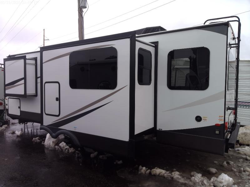 This double slide out travel trailer is perfect for weekend trips or extended stays! Your crew can play a game around the U-shaped dinette, relax on the theater seat across from the TV, or visit outdoors under the 21' awning. The fully-equipped kitchen allows you to make meals each day, and the walk-thru bath is easily accessible for everyone to use. This model also includes a front master bedroom with a queen bed, a wardrobe slide out, and one of the dual entry doors for convenience!