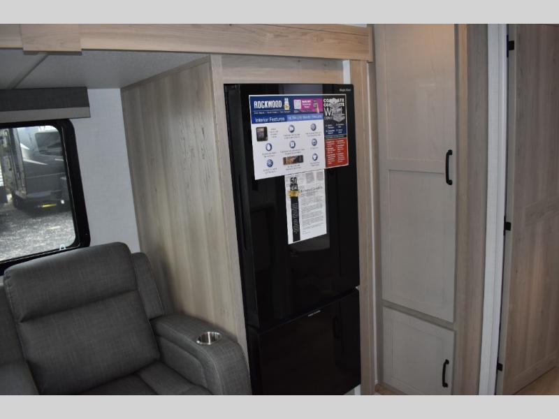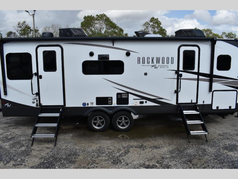 Each Rockwood Ultra Lite travel trailer by Forest River includes superior construction with a high gloss front cap, laminated white fiberglass sidewalls, and tinted frameless windows for a sleek look. The torsion axle, Rubber-Ryde suspension will make towing smooth and hassle-free, along with the nitrogen filled, Goodyear Endurance tires and the tire pressure monitor system. Interior comforts include designer kitchen backsplash, solid wood cabinet doors with hidden hinges, and night roller shades to name a few. Choose a Rockwood Ultra Lite travel trailer today!