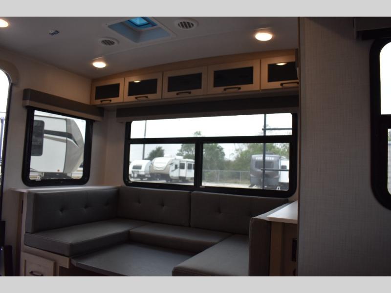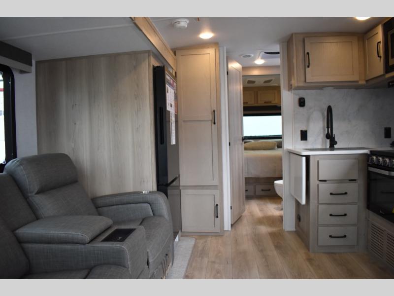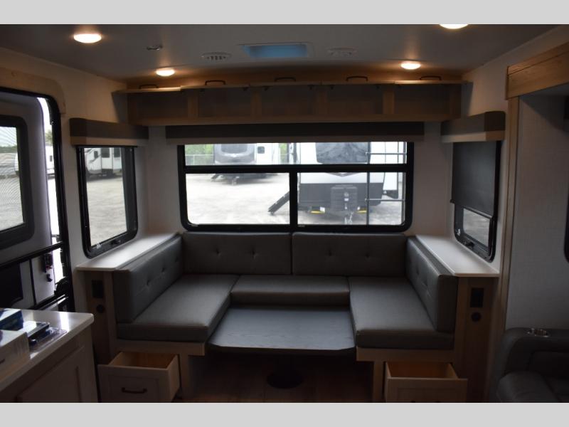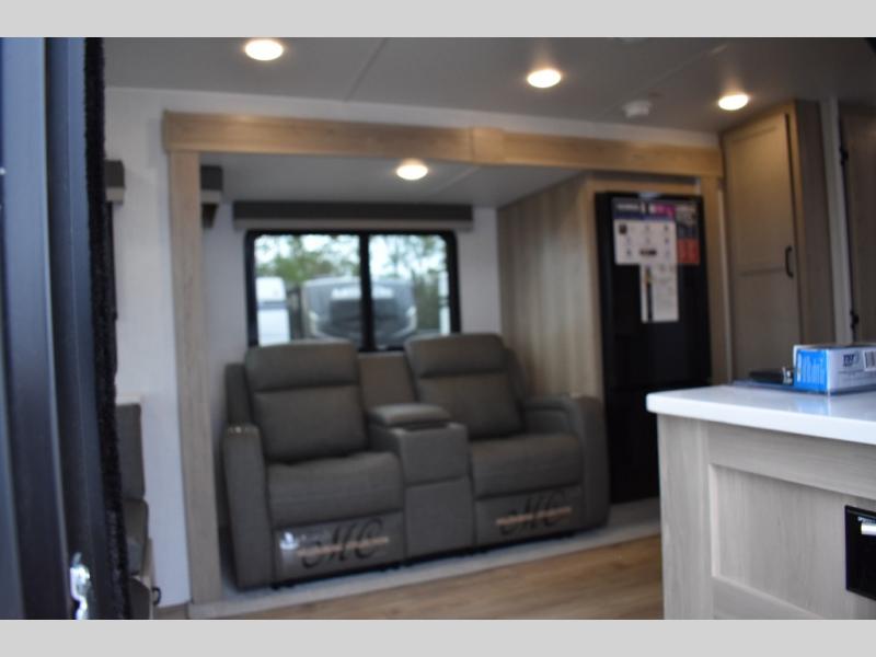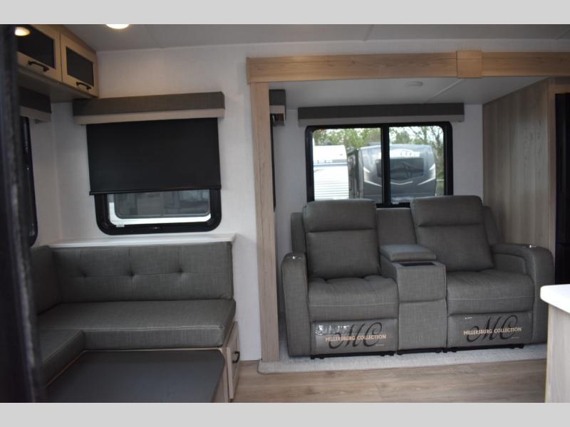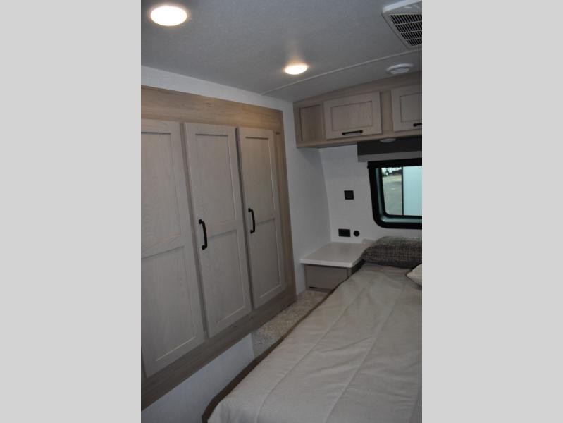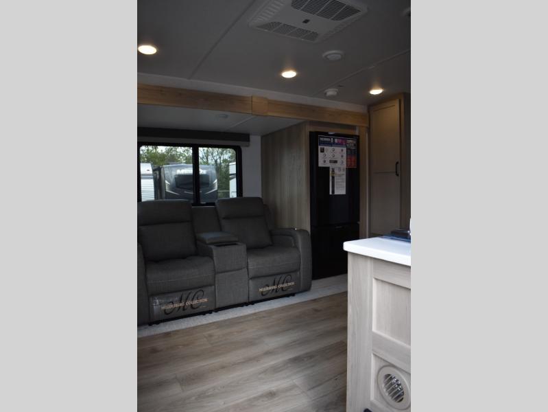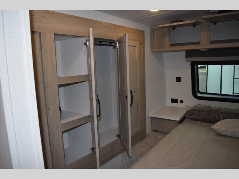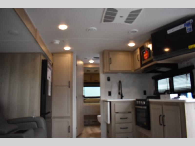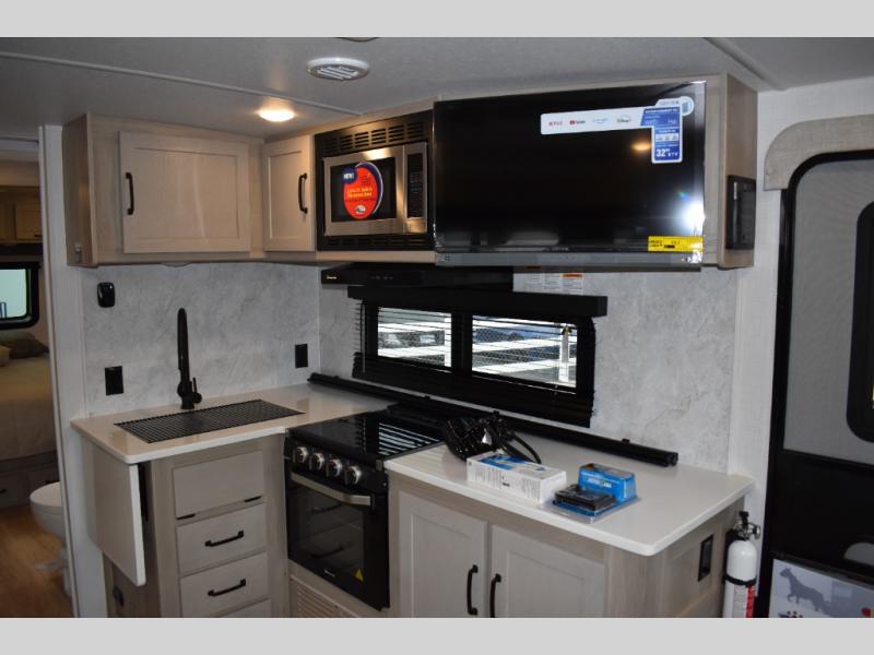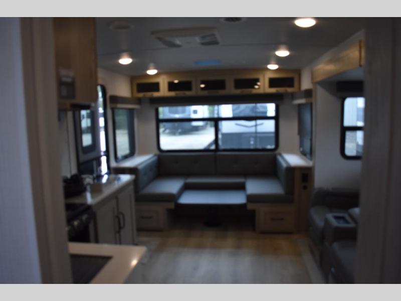This double slide out travel trailer is perfect for weekend trips or extended stays! Your crew can play a game around the U-shaped dinette, relax on the theater seat across from the TV, or visit outdoors under the 21' awning. The fully-equipped kitchen allows you to make meals each day, and the walk-thru bath is easily accessible for everyone to use. This model also includes a front master bedroom with a queen bed, a wardrobe slide out, and one of the dual entry doors for convenience!