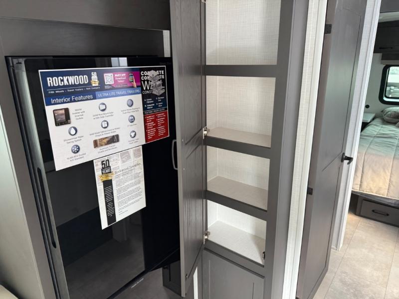 Each Rockwood Ultra Lite travel trailer by Forest River includes superior construction with a high gloss front cap, laminated white fiberglass sidewalls, and tinted frameless windows for a sleek look. The torsion axle, Rubber-Ryde suspension will make towing smooth and hassle-free, along with the nitrogen filled, Goodyear Endurance tires and the tire pressure monitor system. Interior comforts include designer kitchen backsplash, solid wood cabinet doors with hidden hinges, and night roller shades to name a few. Choose a Rockwood Ultra Lite travel trailer today!