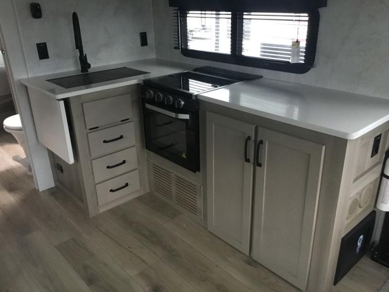 This double slide out travel trailer is perfect for weekend trips or extended stays! Your crew can play a game around the U-shaped dinette, relax on the theater seat across from the TV, or visit outdoors under the 21' awning. The fully-equipped kitchen allows you to make meals each day, and the walk-thru bath is easily accessible for everyone to use. This model also includes a front master bedroom with a queen bed, a wardrobe slide out, and one of the dual entry doors for convenience!