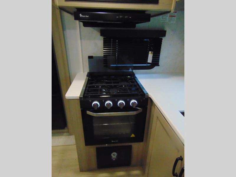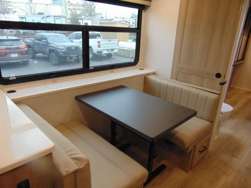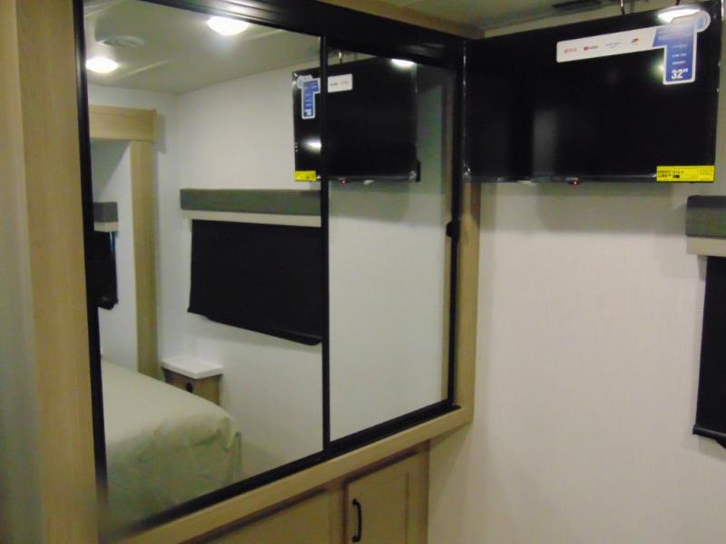 Wherever you decide to camp, you can be sure to enjoy your time in this double slide out trailer! The chef of your group will love having a front kitchen with generous counter space plus an exterior griddle when the weather is nice. There is also a 21' awning outdoors, along with Solid Entry Steps, and dual entry doors! A 39" booth dinette provides a place to dine or play a card game after dinner, and the theater seat across from the 40" TV is perfect for movie night. The walk-thru bath leads to the rear master bedroom where you'll find a queen bed, a large wardrobe, and a TV option if you enjoy shows in bed!