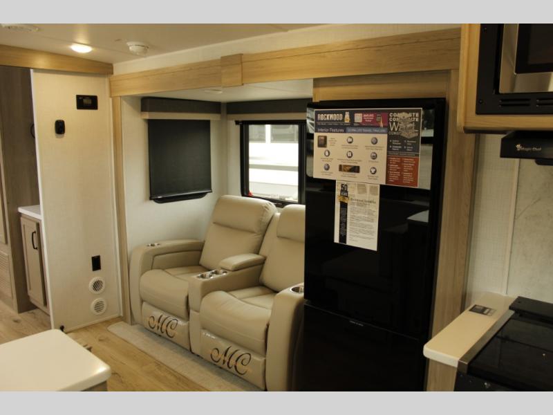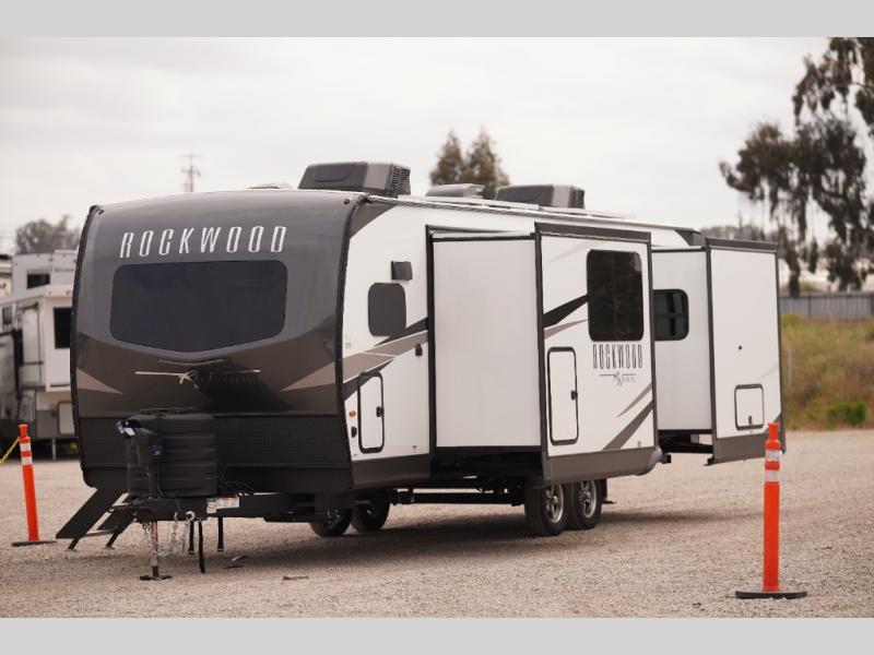 Each Rockwood Ultra Lite travel trailer by Forest River includes superior construction with a high gloss front cap, laminated white fiberglass sidewalls, and tinted frameless windows for a sleek look. The torsion axle, Rubber-Ryde suspension will make towing smooth and hassle-free, along with the nitrogen filled, Goodyear Endurance tires and the tire pressure monitor system. Interior comforts include designer kitchen backsplash, solid wood cabinet doors with hidden hinges, and night roller shades to name a few. Choose a Rockwood Ultra Lite travel trailer today!