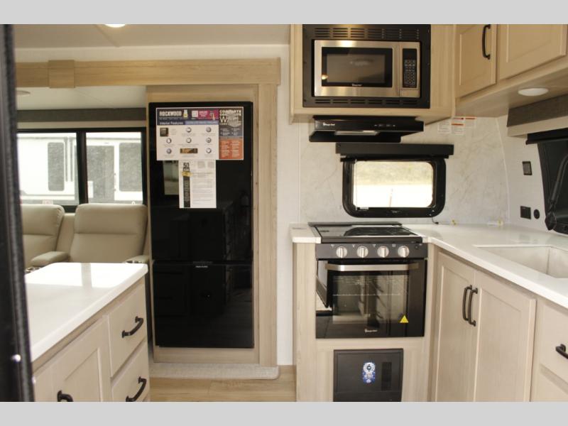 Each Rockwood Ultra Lite travel trailer by Forest River includes superior construction with a high gloss front cap, laminated white fiberglass sidewalls, and tinted frameless windows for a sleek look. The torsion axle, Rubber-Ryde suspension will make towing smooth and hassle-free, along with the nitrogen filled, Goodyear Endurance tires and the tire pressure monitor system. Interior comforts include designer kitchen backsplash, solid wood cabinet doors with hidden hinges, and night roller shades to name a few. Choose a Rockwood Ultra Lite travel trailer today!