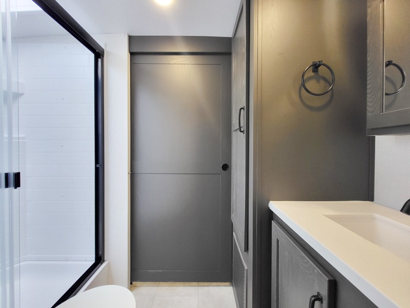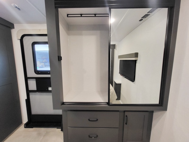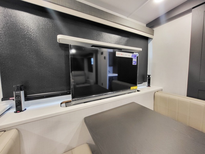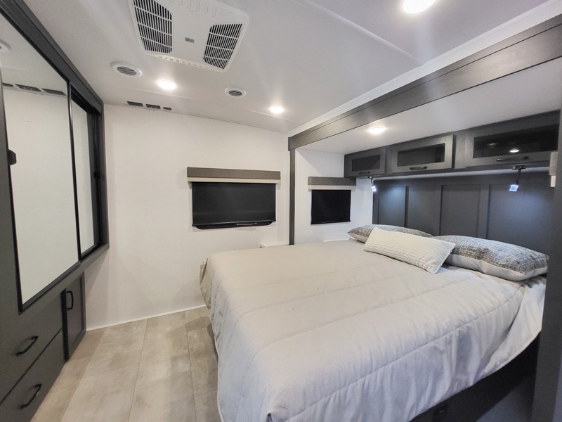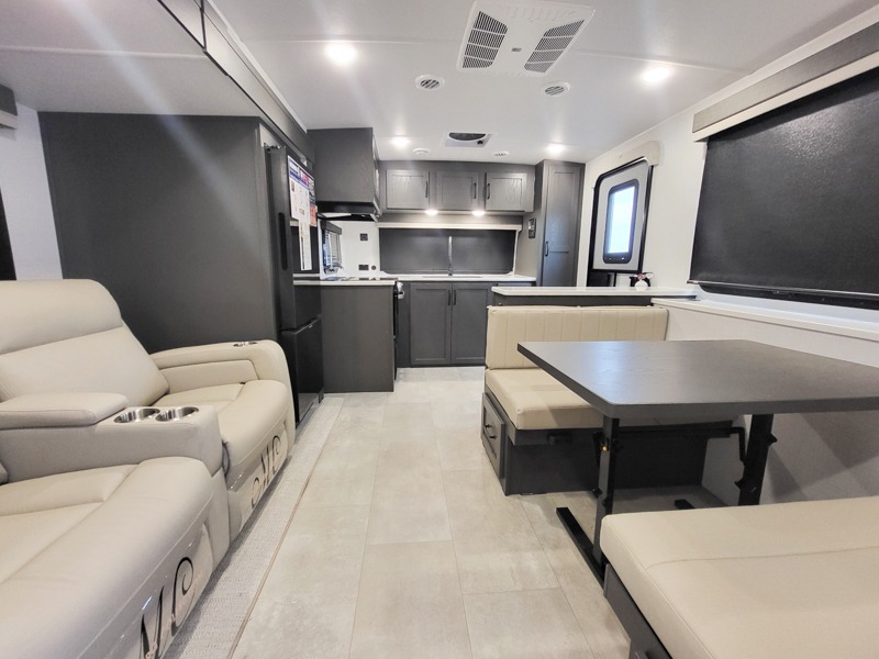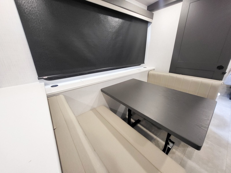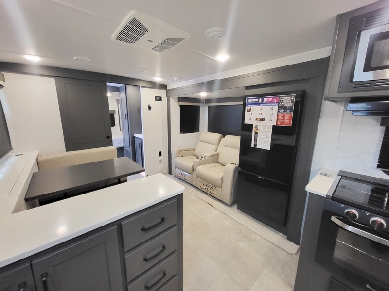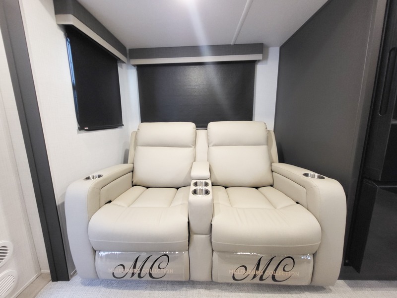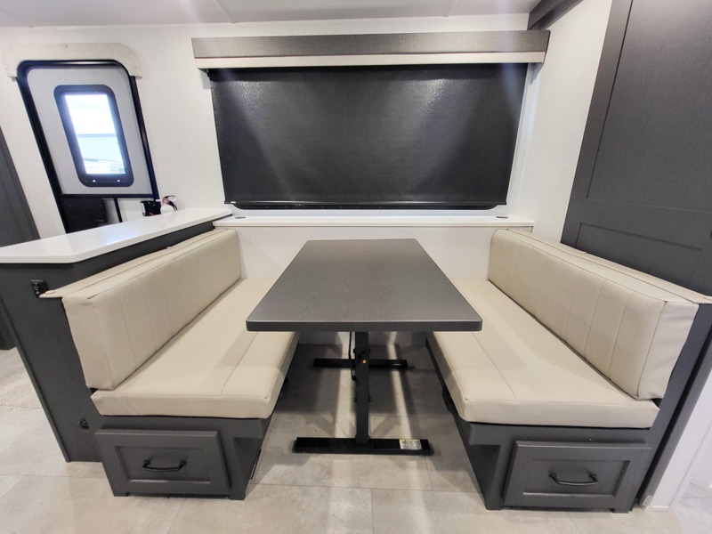 Wherever you decide to camp, you can be sure to enjoy your time in this double slide out trailer! The chef of your group will love having a front kitchen with generous counter space plus an exterior griddle when the weather is nice. There is also a 21' awning outdoors, along with Solid Entry Steps, and dual entry doors! A 39" booth dinette provides a place to dine or play a card game after dinner, and the theater seat across from the 40" TV is perfect for movie night. The walk-thru bath leads to the rear master bedroom where you'll find a queen bed, a large wardrobe, and a TV option if you enjoy shows in bed!