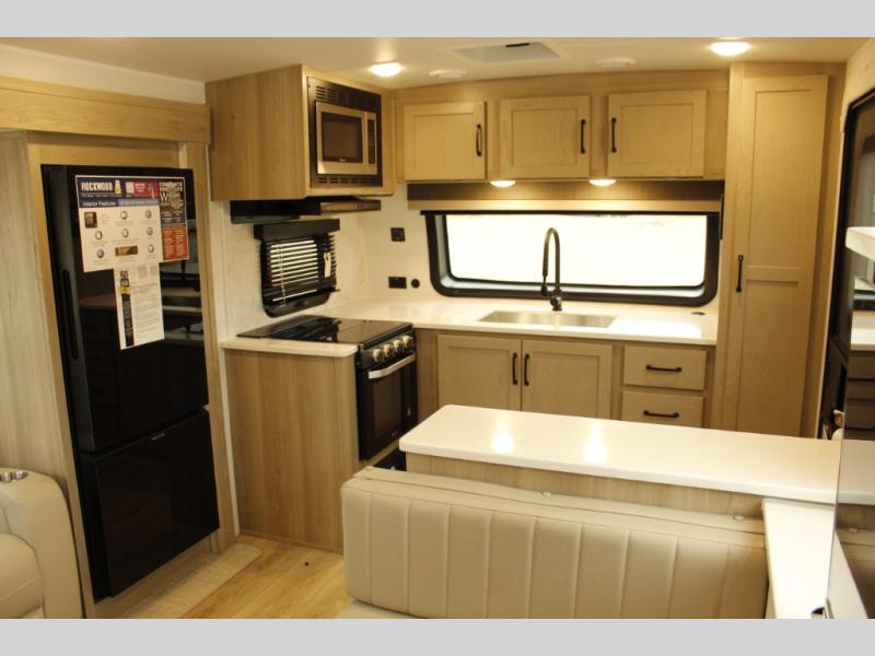 Each Rockwood Ultra Lite travel trailer by Forest River includes superior construction with a high gloss front cap, laminated white fiberglass sidewalls, and tinted frameless windows for a sleek look. The torsion axle, Rubber-Ryde suspension will make towing smooth and hassle-free, along with the nitrogen filled, Goodyear Endurance tires and the tire pressure monitor system. Interior comforts include designer kitchen backsplash, solid wood cabinet doors with hidden hinges, and night roller shades to name a few. Choose a Rockwood Ultra Lite travel trailer today!
