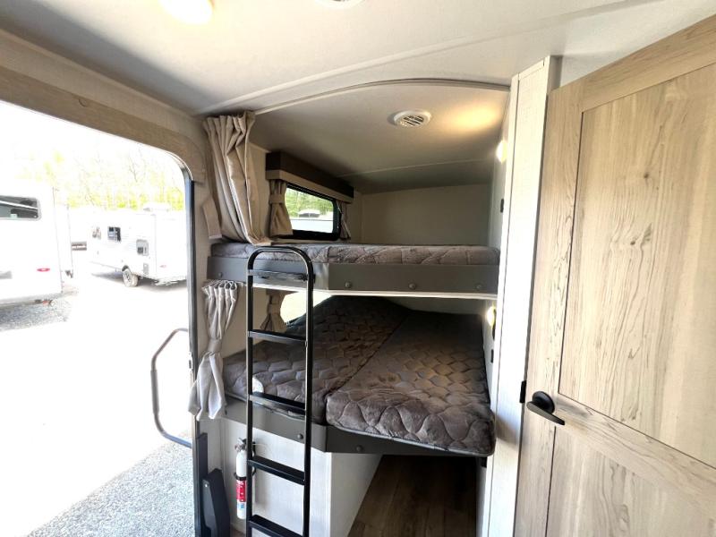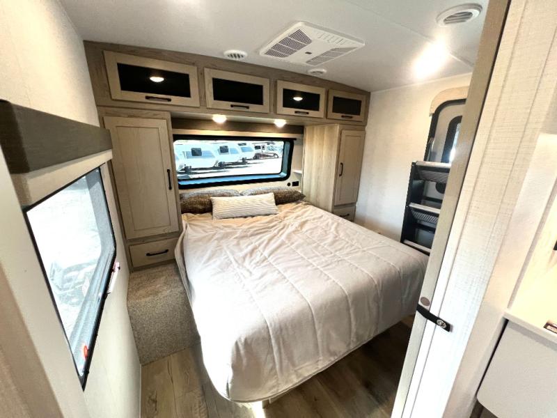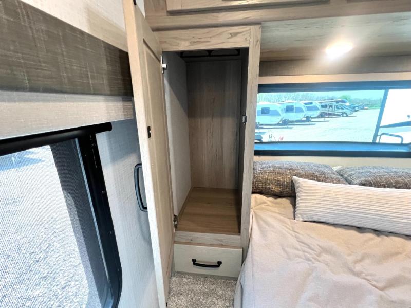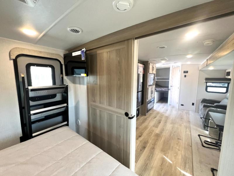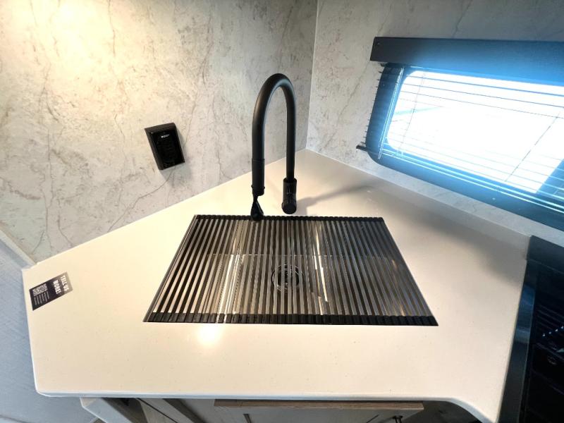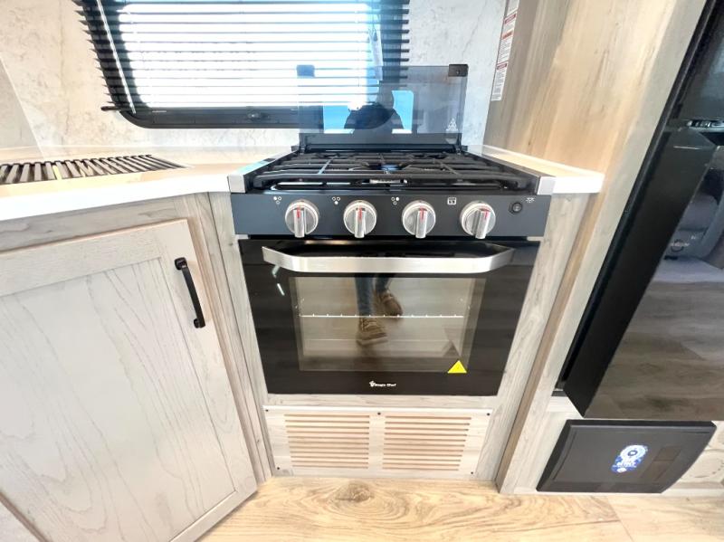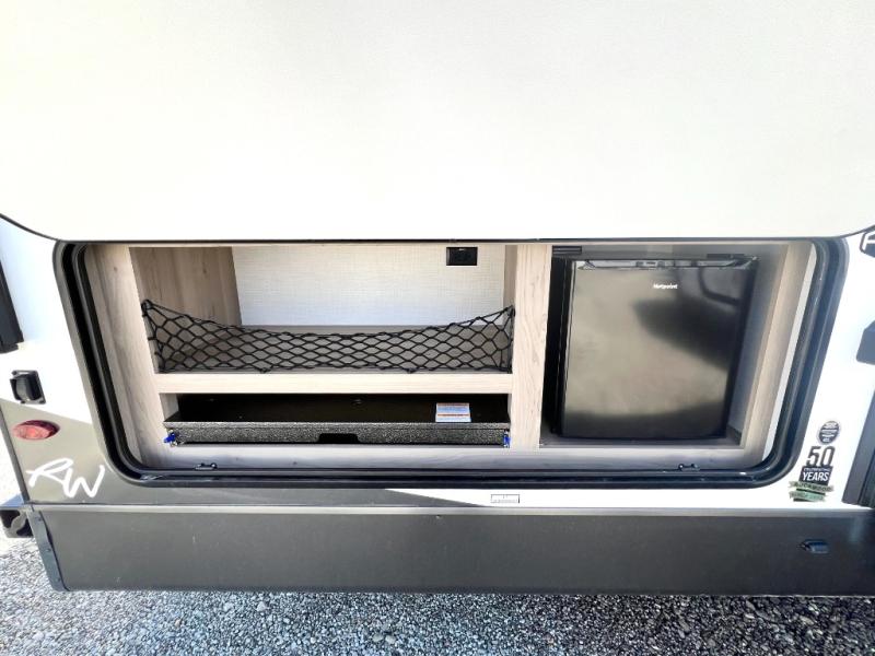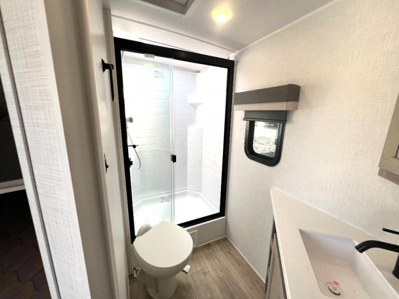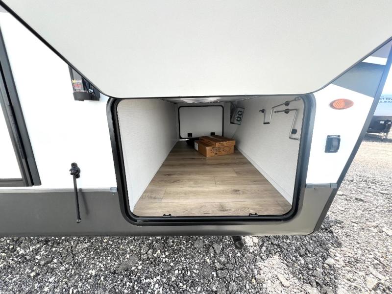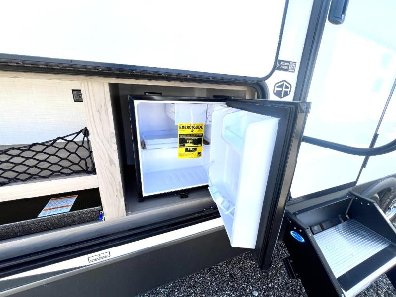 Looking for a trailer that sleeps eight, allows you to cook indoors or outdoors, and provides added interior space? This trailer provides for those wants and needs, and even more! The outside kitchen gives you more choices when feeding the masses along with the outside griddle, and the interior kitchen includes an L-shaped area for the cook to have their own space with full amenities including a walk-in pantry to bring along everything they need. The full bathroom will keep everyone refreshed, and the theater seating and U-shaped dinette offer seating inside to enjoy the Smart TV and fireplace. There is plenty of storage found throughout the interior, and along the exterior you will find several places to stow your outdoor items including in the pass thru storage with an optional steel sliding tray. There is even a front door option if you prefer to have dual entry doors!