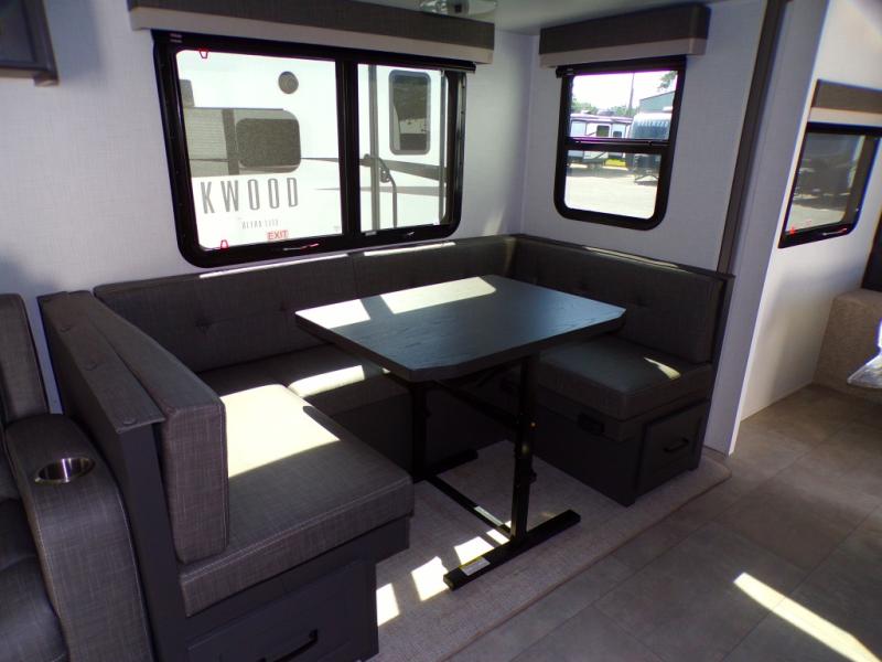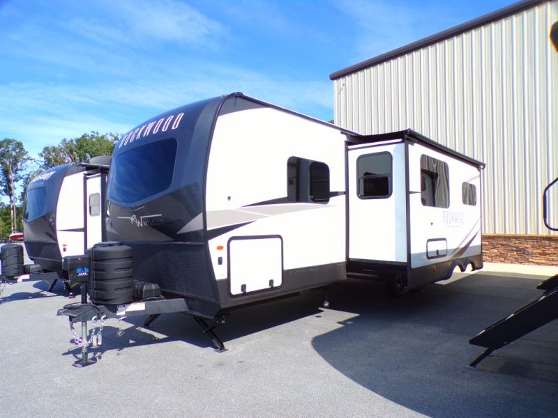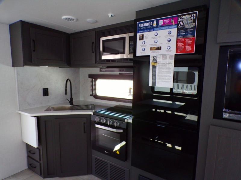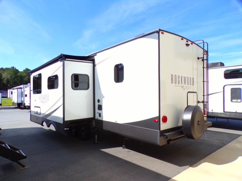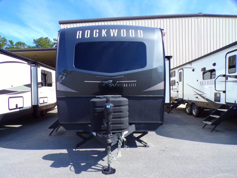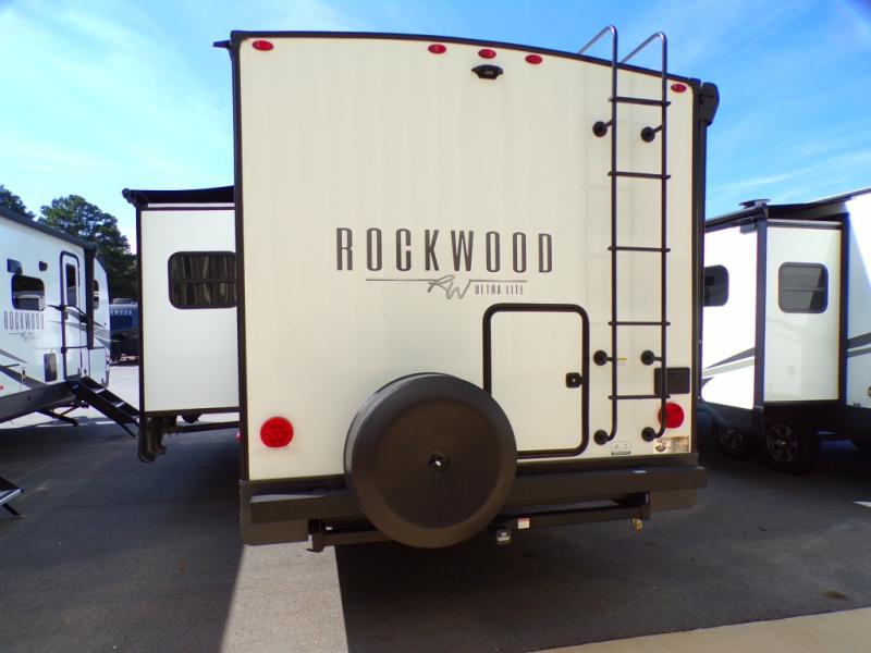 Each Rockwood Ultra Lite travel trailer by Forest River includes superior construction with a high gloss front cap, laminated white fiberglass sidewalls, and tinted frameless windows for a sleek look. The torsion axle, Rubber-Ryde suspension will make towing smooth and hassle-free, along with the nitrogen filled, Goodyear Endurance tires and the tire pressure monitor system. Interior comforts include designer kitchen backsplash, solid wood cabinet doors with hidden hinges, and night roller shades to name a few. Choose a Rockwood Ultra Lite travel trailer today!