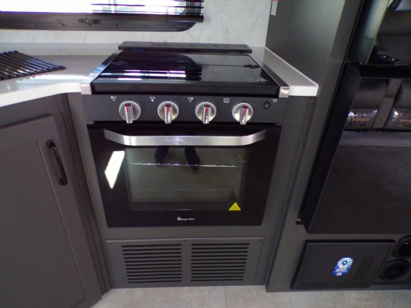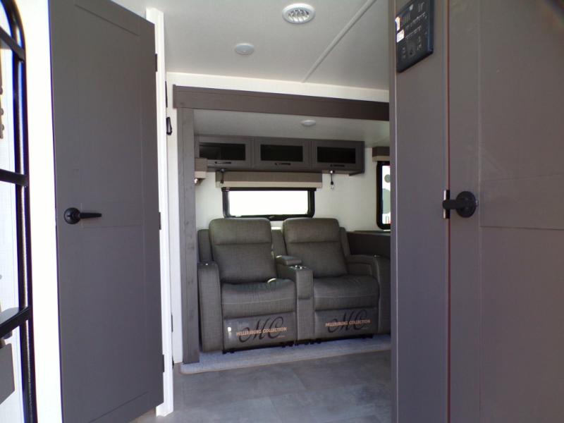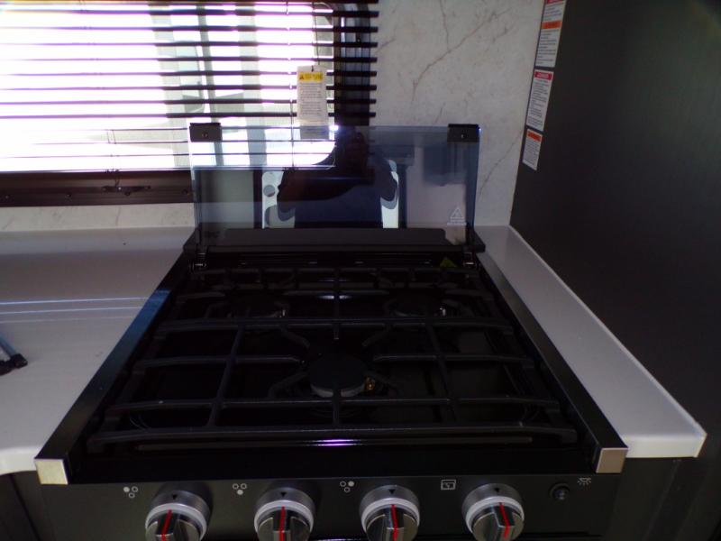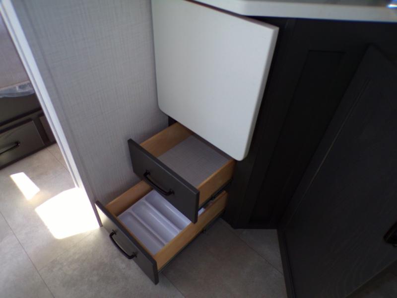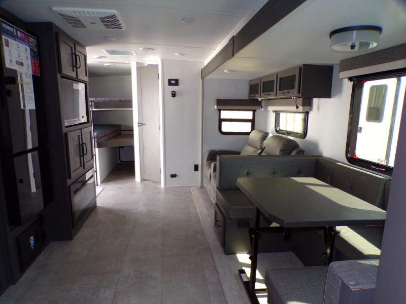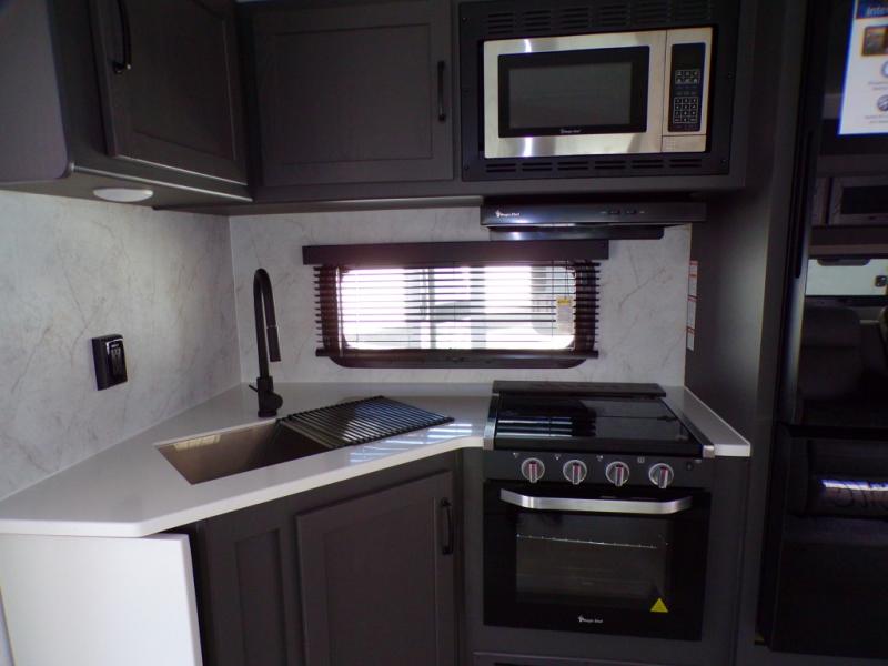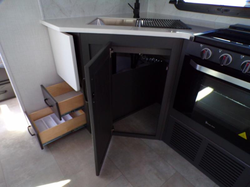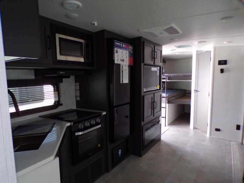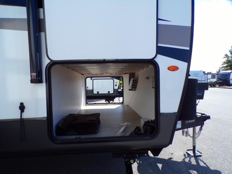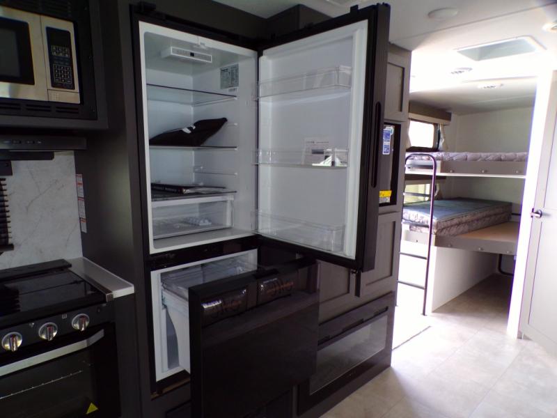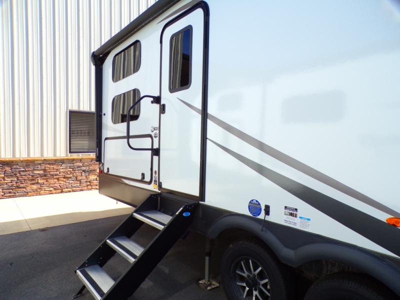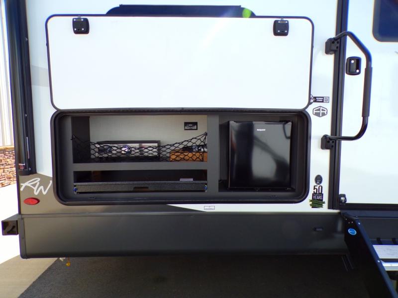 Looking for a trailer that sleeps eight, allows you to cook indoors or outdoors, and provides added interior space? This trailer provides for those wants and needs, and even more! The outside kitchen gives you more choices when feeding the masses along with the outside griddle, and the interior kitchen includes an L-shaped area for the cook to have their own space with full amenities including a walk-in pantry to bring along everything they need. The full bathroom will keep everyone refreshed, and the theater seating and U-shaped dinette offer seating inside to enjoy the Smart TV and fireplace. There is plenty of storage found throughout the interior, and along the exterior you will find several places to stow your outdoor items including in the pass thru storage with an optional steel sliding tray. There is even a front door option if you prefer to have dual entry doors!