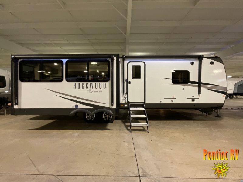 Each Rockwood Ultra Lite travel trailer by Forest River includes superior construction with a high gloss front cap, laminated white fiberglass sidewalls, and tinted frameless windows for a sleek look. The torsion axle, Rubber-Ryde suspension will make towing smooth and hassle-free, along with the nitrogen filled, Goodyear Endurance tires and the tire pressure monitor system. Interior comforts include designer kitchen backsplash, solid wood cabinet doors with hidden hinges, and night roller shades to name a few. Choose a Rockwood Ultra Lite travel trailer today!