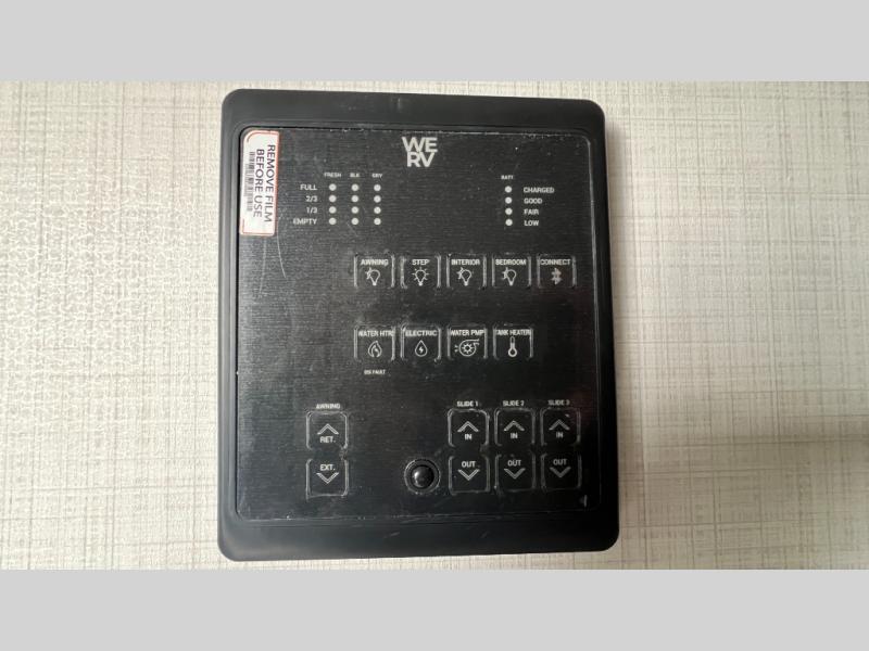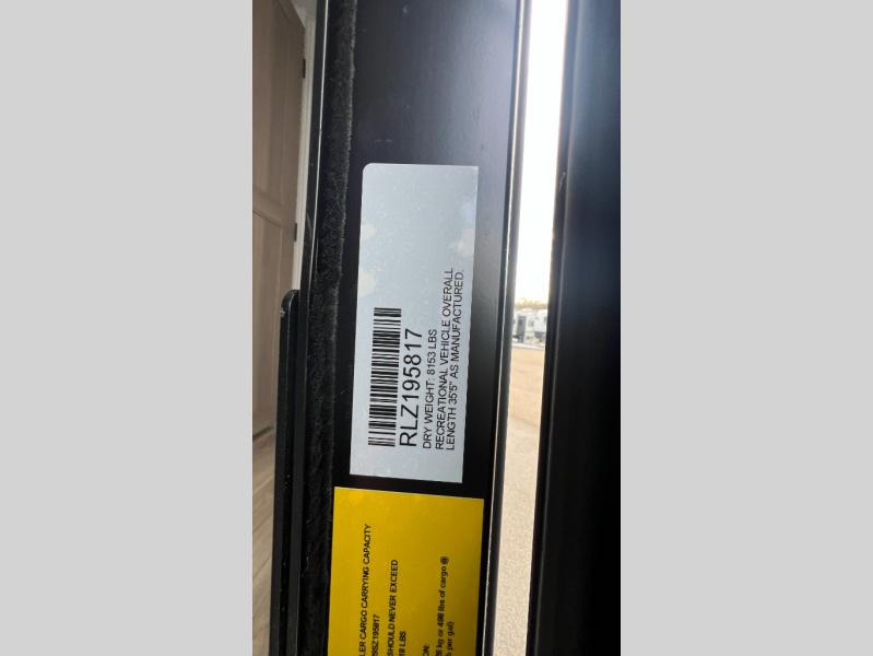 Enjoy trips to the lake in this travel trailer with triple slides! The rear living area includes a rear entertainment center, a 60" theater seat, plus two hide-a-bed sofas, which allows this room to double as your guests' bedroom at night. You'll enjoy the front private bedroom all to yourselves, and the full bath is close by for convenience. The chef of your group will love the full kitchen with a three burner range, a 21" gas oven, and a 12V refrigerator to hold perishables. And don't overlook the exterior with its outside storage, 21' awning, and exterior griddle!