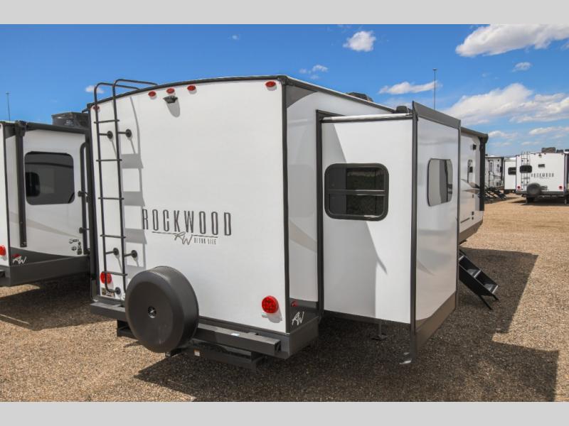Each Rockwood Ultra Lite travel trailer by Forest River includes superior construction with a high gloss front cap, laminated white fiberglass sidewalls, and tinted frameless windows for a sleek look. The torsion axle, Rubber-Ryde suspension will make towing smooth and hassle-free, along with the nitrogen filled, Goodyear Endurance tires and the tire pressure monitor system. Interior comforts include designer kitchen backsplash, solid wood cabinet doors with hidden hinges, and night roller shades to name a few. Choose a Rockwood Ultra Lite travel trailer today!