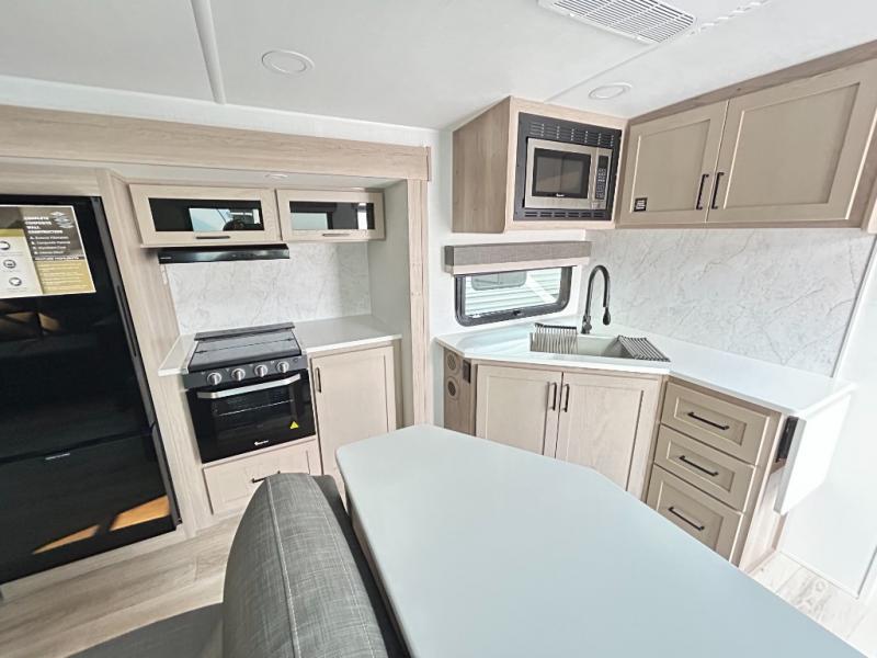 Each Rockwood Ultra Lite travel trailer by Forest River includes superior construction with a high gloss front cap, laminated white fiberglass sidewalls, and tinted frameless windows for a sleek look. The torsion axle, Rubber-Ryde suspension will make towing smooth and hassle-free, along with the nitrogen filled, Goodyear Endurance tires and the tire pressure monitor system. Interior comforts include designer kitchen backsplash, solid wood cabinet doors with hidden hinges, and night roller shades to name a few. Choose a Rockwood Ultra Lite travel trailer today!