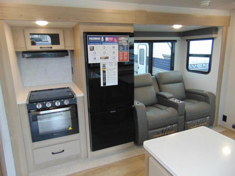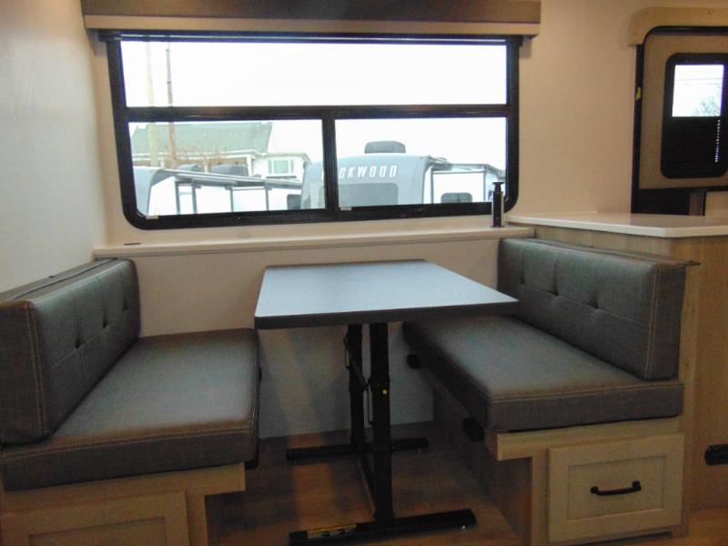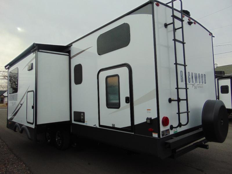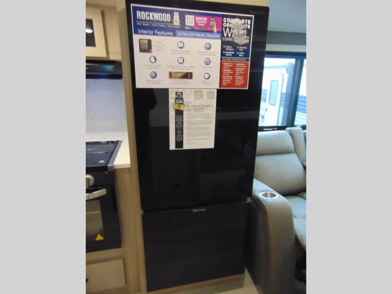 Each Rockwood Ultra Lite travel trailer by Forest River includes superior construction with a high gloss front cap, laminated white fiberglass sidewalls, and tinted frameless windows for a sleek look. The torsion axle, Rubber-Ryde suspension will make towing smooth and hassle-free, along with the nitrogen filled, Goodyear Endurance tires and the tire pressure monitor system. Interior comforts include designer kitchen backsplash, solid wood cabinet doors with hidden hinges, and night roller shades to name a few. Choose a Rockwood Ultra Lite travel trailer today!
