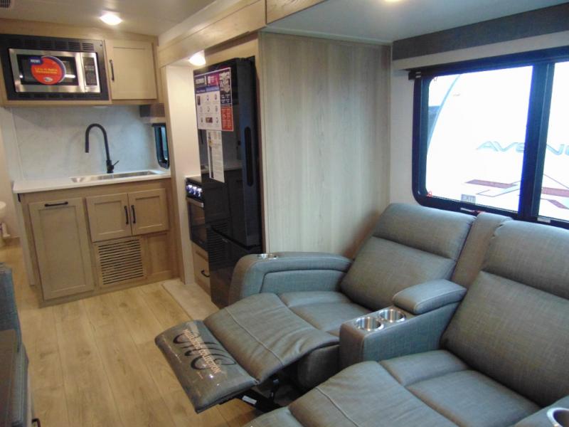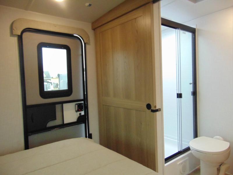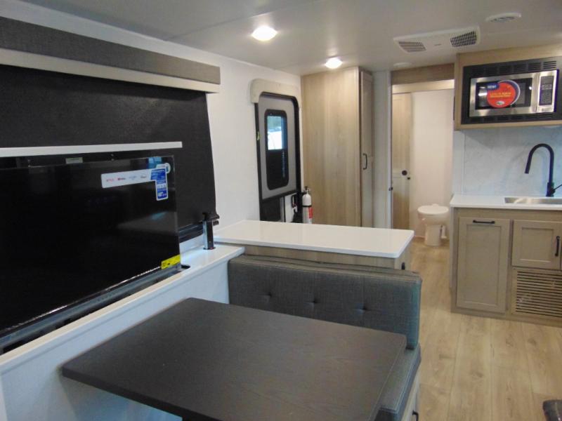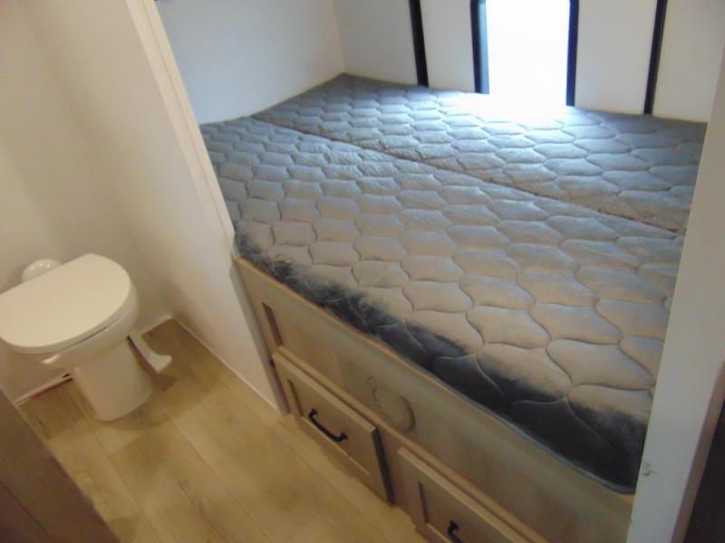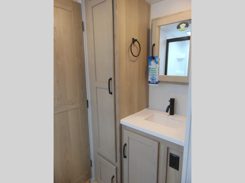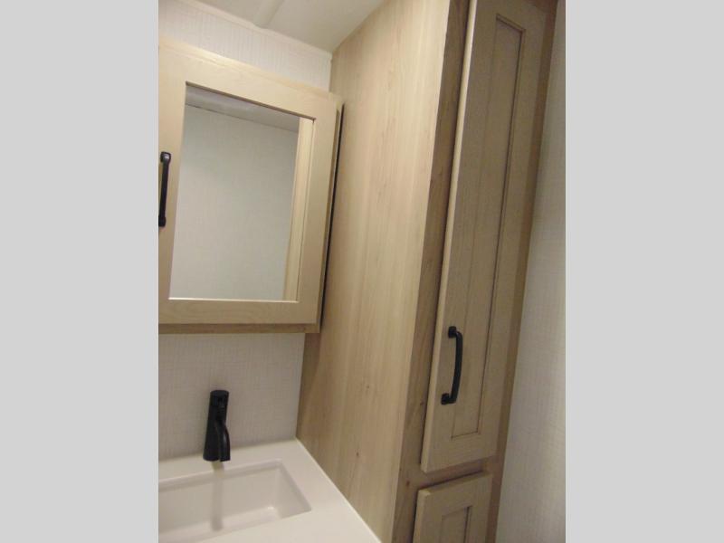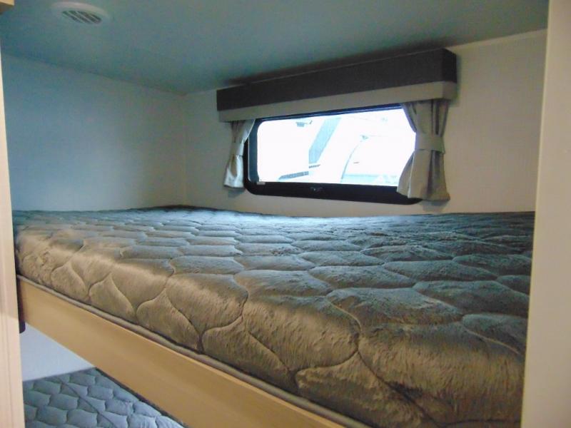 If you've been searching for a full-featured travel trailer, this is the one! Not only will you enjoy your own space up front in the master bedroom, but your guests can claim the rear bunkhouse suite all to themselves. There are two bunks with storage here, along with a desk, and a half bath for convenience. Your crew can meet in the middle living area on the theater seat or booth dinette. There is also a 39" TV here for movie nights! The chef can choose to cook indoors on the three burner range, or head outdoors to use the exterior griddle. A full walk-thru bath is sure to come in handy after a day at the lake, and did we mention this unit has dual entry doors?!