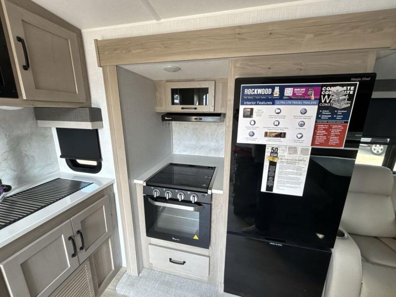 Each Rockwood Ultra Lite travel trailer by Forest River includes superior construction with a high gloss front cap, laminated white fiberglass sidewalls, and tinted frameless windows for a sleek look. The torsion axle, Rubber-Ryde suspension will make towing smooth and hassle-free, along with the nitrogen filled, Goodyear Endurance tires and the tire pressure monitor system. Interior comforts include designer kitchen backsplash, solid wood cabinet doors with hidden hinges, and night roller shades to name a few. Choose a Rockwood Ultra Lite travel trailer today!