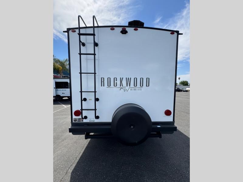 Each Rockwood Ultra Lite travel trailer by Forest River includes superior construction with a high gloss front cap, laminated white fiberglass sidewalls, and tinted frameless windows for a sleek look. The torsion axle, Rubber-Ryde suspension will make towing smooth and hassle-free, along with the nitrogen filled, Goodyear Endurance tires and the tire pressure monitor system. Interior comforts include designer kitchen backsplash, solid wood cabinet doors with hidden hinges, and night roller shades to name a few. Choose a Rockwood Ultra Lite travel trailer today!