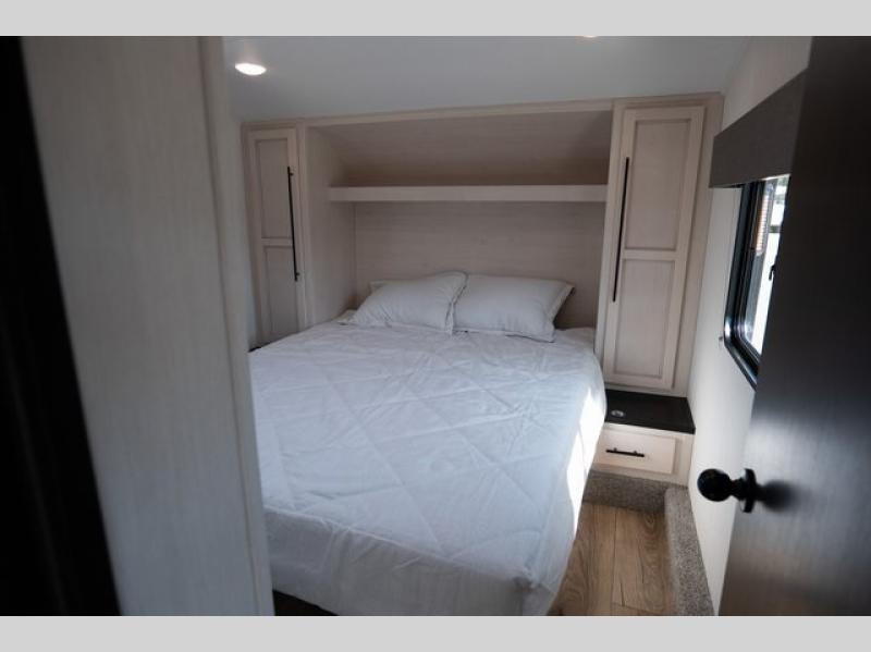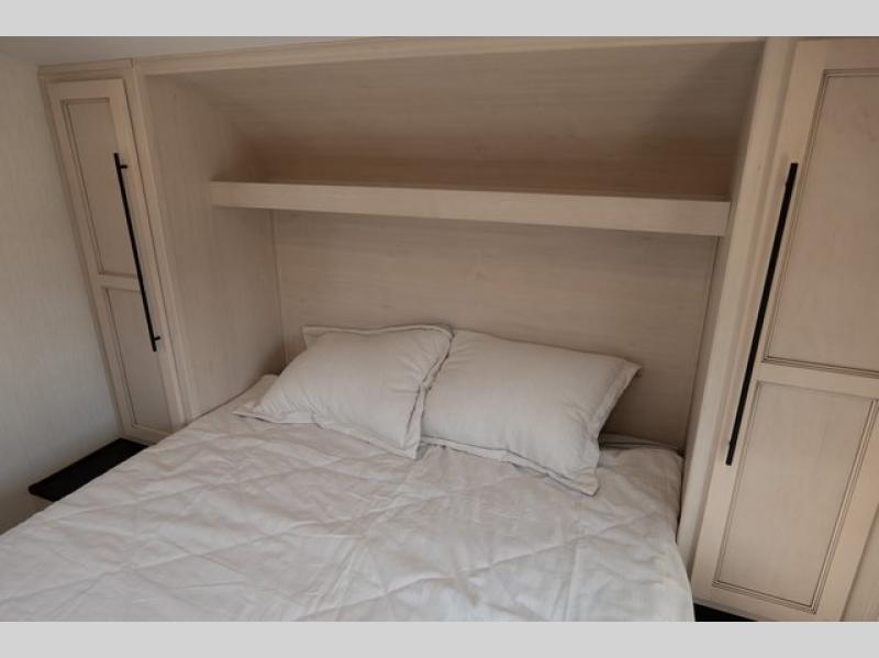 Time at the campground in this spacious travel trailer will be time well spent! The large slide out will provide your crew with plenty of space to stretch out, and there is a tri-fold sofa here and recliners. There is also a collapsible dinette that you can take out when you're ready to eat. The swing-out entertainment center hides the walk-in pantry, and the colossal 12V refrigerator with French doors will be perfect for perishables. There is generous counter space in the fully-equipped kitchen, and the full bath includes a spacious shower with a seat so you won't feel crammed when getting ready for the day. Head to the front private bedroom where you'll get a great night's rest on the queen bed and be able to store your items in the dual wardrobes!