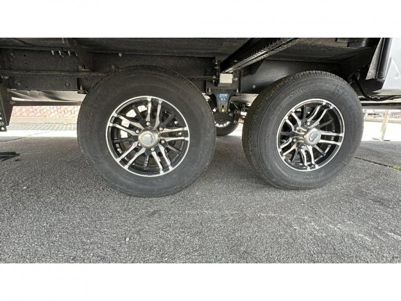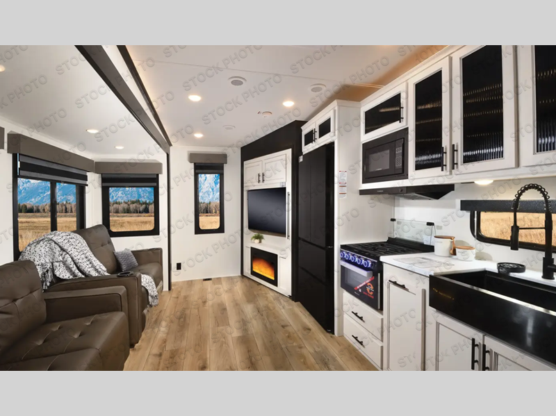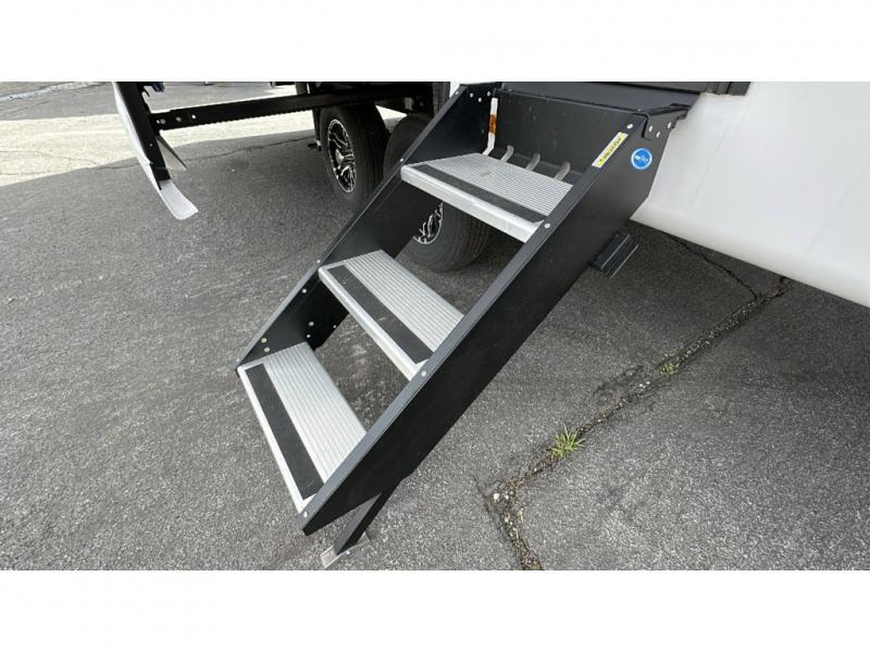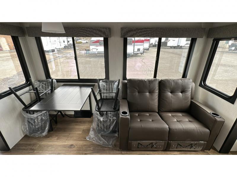 You will experience luxurious camping trips at an affordable price with any one of these Forest River Sabre fifth wheels! These models are durable and ready to travel anytime of the year thanks to features like the high-gloss gel-coat front cap with LED lighting, the PVC roof membrane, and the forced air underbelly with enclosed gate valves. The electric auto-leveling system makes setting up easy and safe, and the adjustable power awning with LED lighting will create an inviting outdoor living space. Each model includes a universal docking station which includes a black tank flush and an outside shower, and detachable and adjustable stable steps for you to enter and exit the unit safely. Inside, you will love the design of the ambient accent lighting in the living area, the real wood lumbercore cabinetry, and the linoleum flooring!