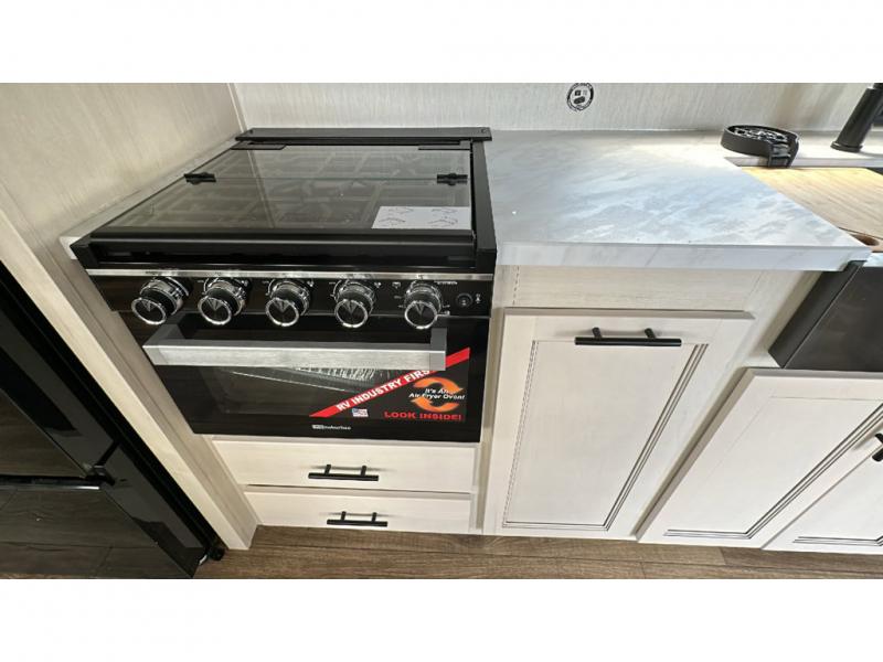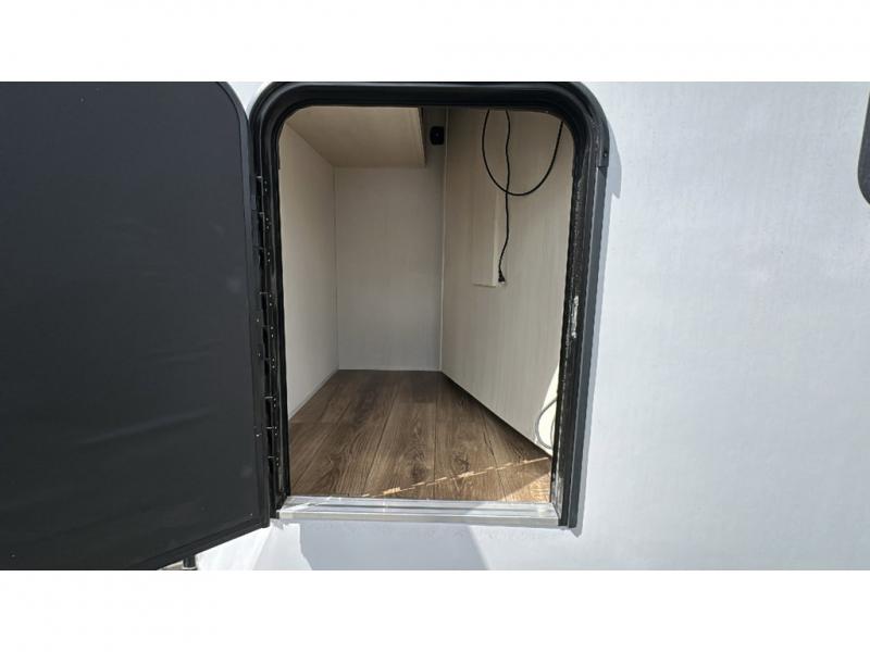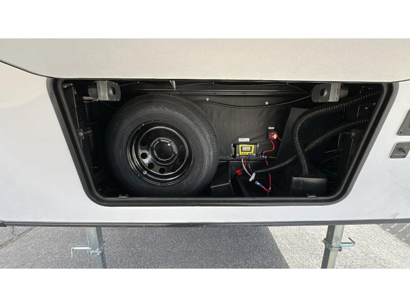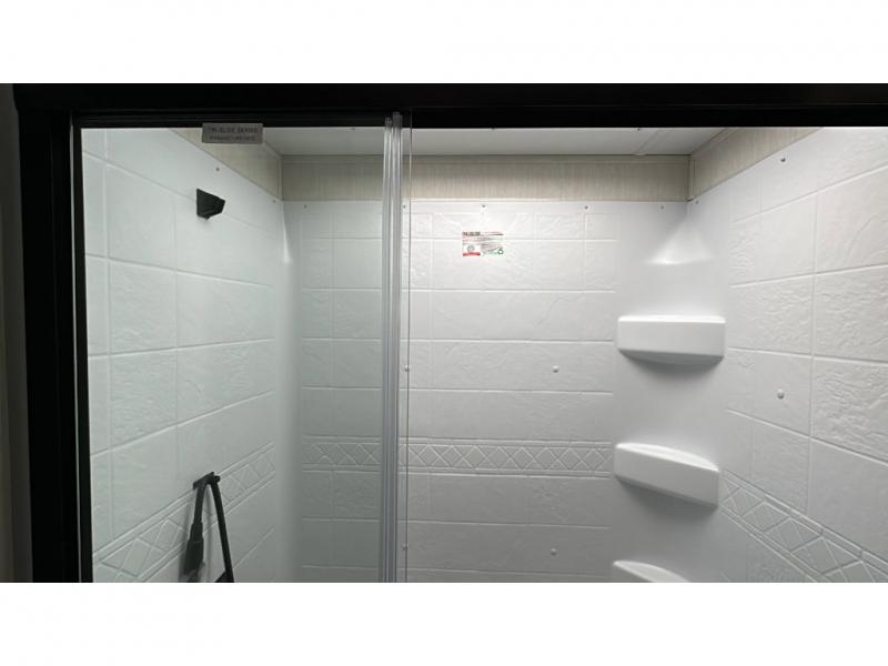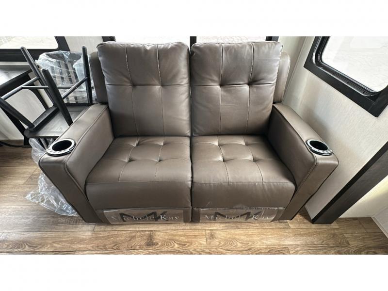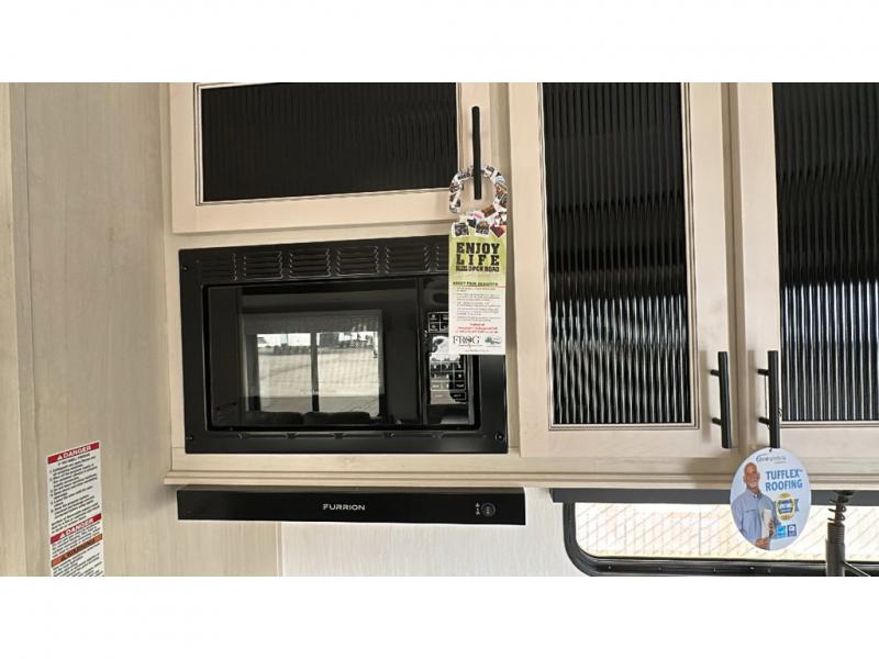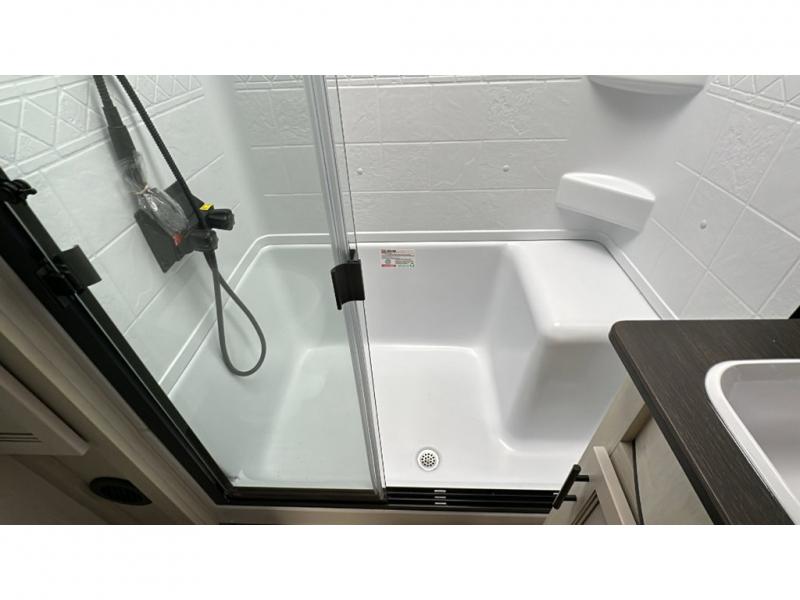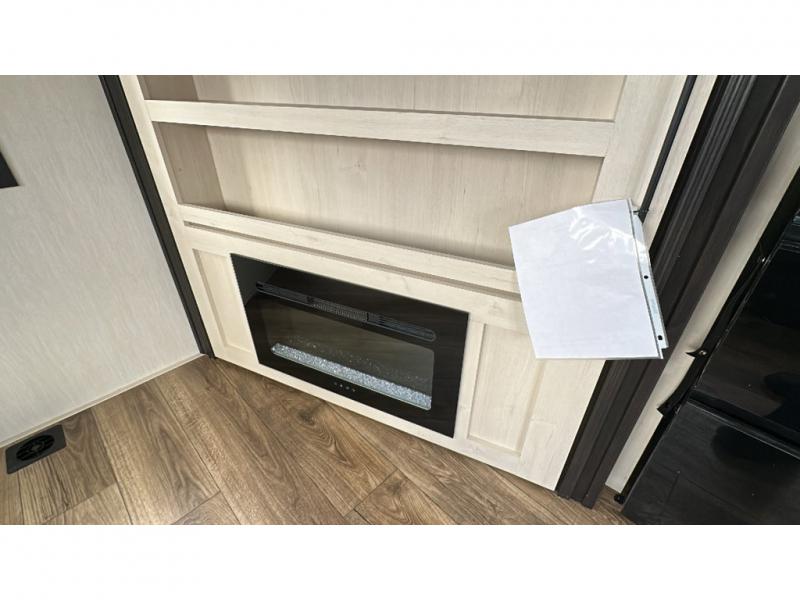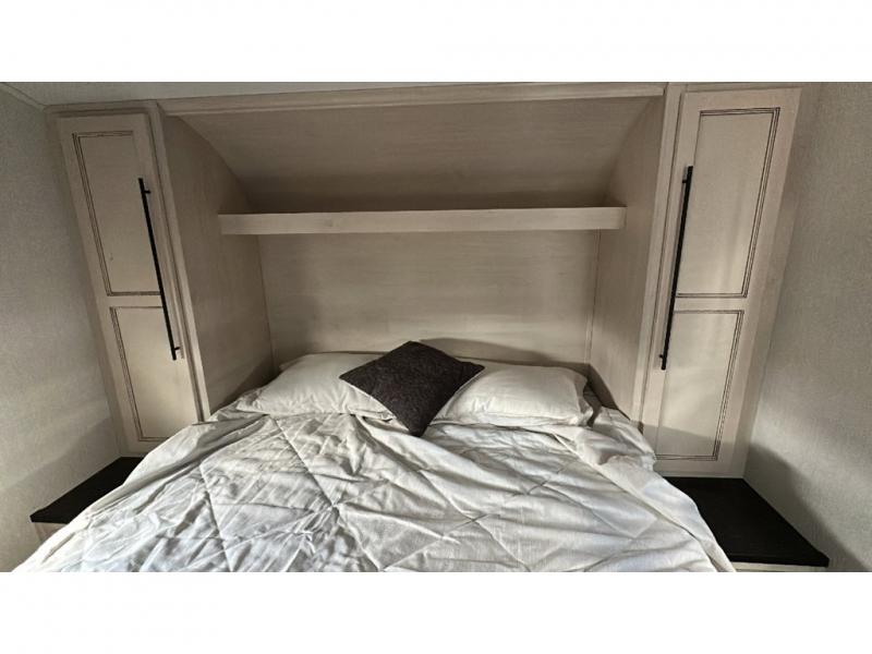 Time at the campground in this spacious travel trailer will be time well spent! The large slide out will provide your crew with plenty of space to stretch out, and there is a free-standing table here and a theater seat for added comfort. The swing-out entertainment center hides the walk-in pantry, and the colossal 12V refrigerator with French doors will be perfect for perishables. There is generous counter space in the fully-equipped kitchen, and the full bath includes a spacious shower with a seat so you won't feel crammed when getting ready for the day. Head to the front private bedroom where you'll get a great night's rest on the queen bed and be able to store your items in the dual wardrobes!