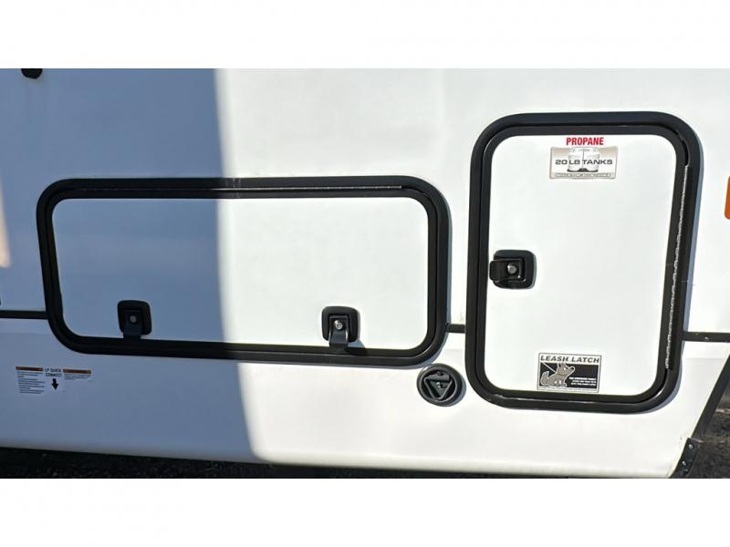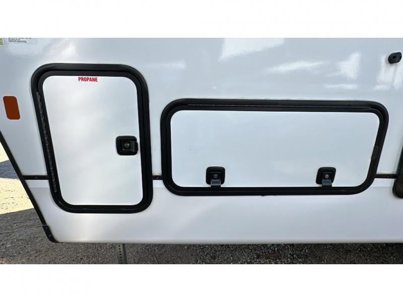 Time at the campground in this spacious travel trailer will be time well spent! The large slide out will provide your crew with plenty of space to stretch out, and there is a free-standing table here and a theater seat for added comfort. The swing-out entertainment center hides the walk-in pantry, and the colossal 12V refrigerator with French doors will be perfect for perishables. There is generous counter space in the fully-equipped kitchen, and the full bath includes a spacious shower with a seat so you won't feel crammed when getting ready for the day. Head to the front private bedroom where you'll get a great night's rest on the queen bed and be able to store your items in the dual wardrobes!