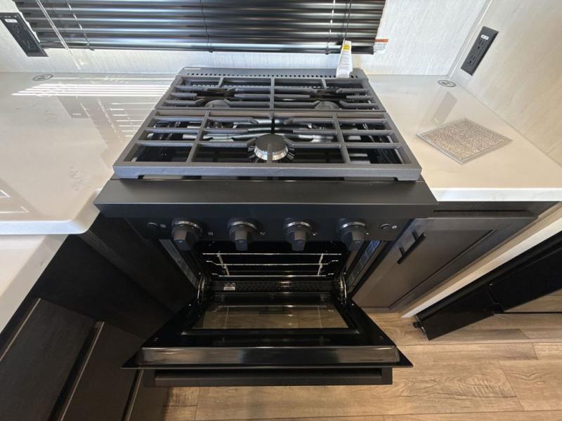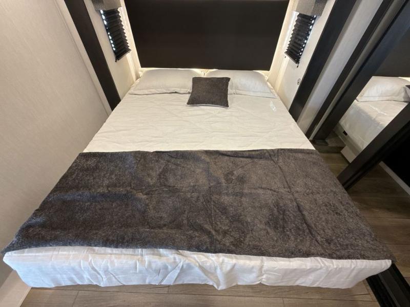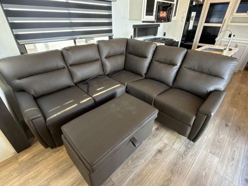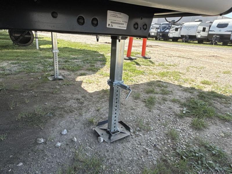 You will experience luxurious camping trips at an affordable price with any one of these Forest River Sabre fifth wheels! These models are durable and ready to travel anytime of the year thanks to features like the high-gloss gel-coat front cap with LED lighting, the PVC roof membrane, and the forced air underbelly with enclosed gate valves. The electric auto-leveling system makes setting up easy and safe, and the adjustable power awning with LED lighting will create an inviting outdoor living space. Each model includes a universal docking station which includes a black tank flush and an outside shower, and detachable and adjustable stable steps for you to enter and exit the unit safely. Inside, you will love the design of the ambient accent lighting in the living area, the real wood lumbercore cabinetry, and the linoleum flooring!