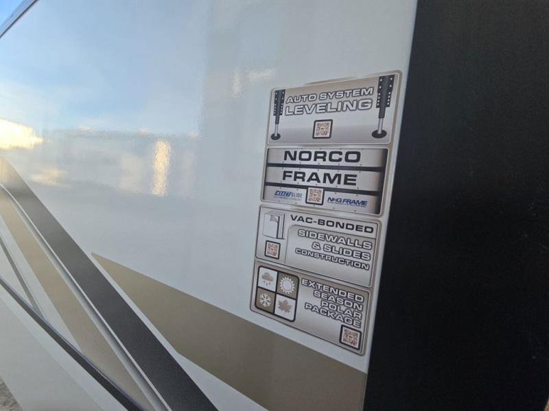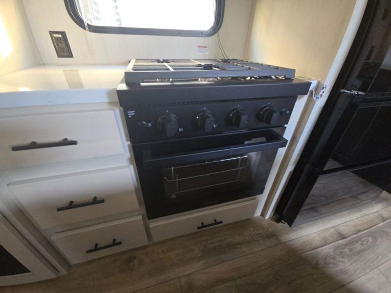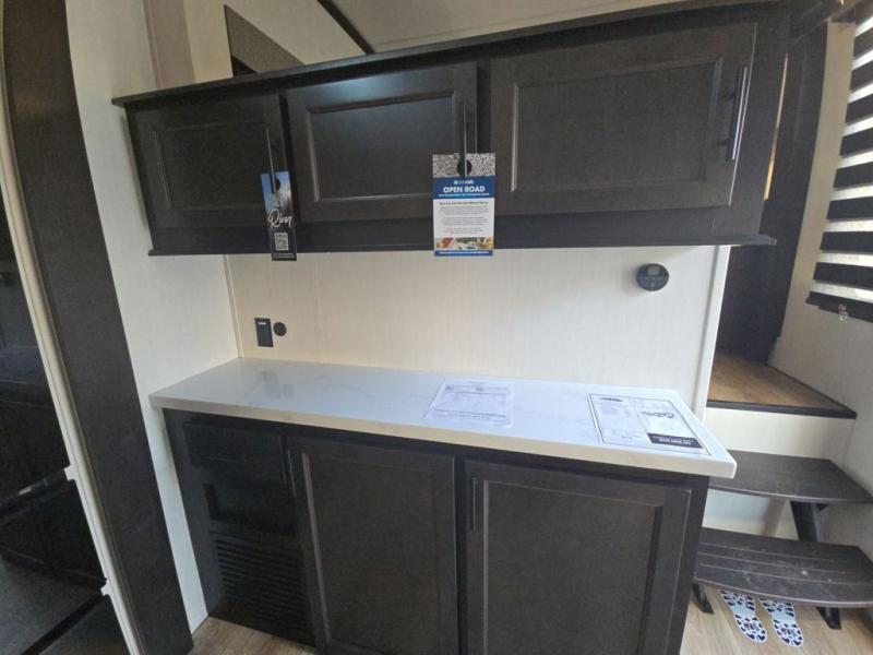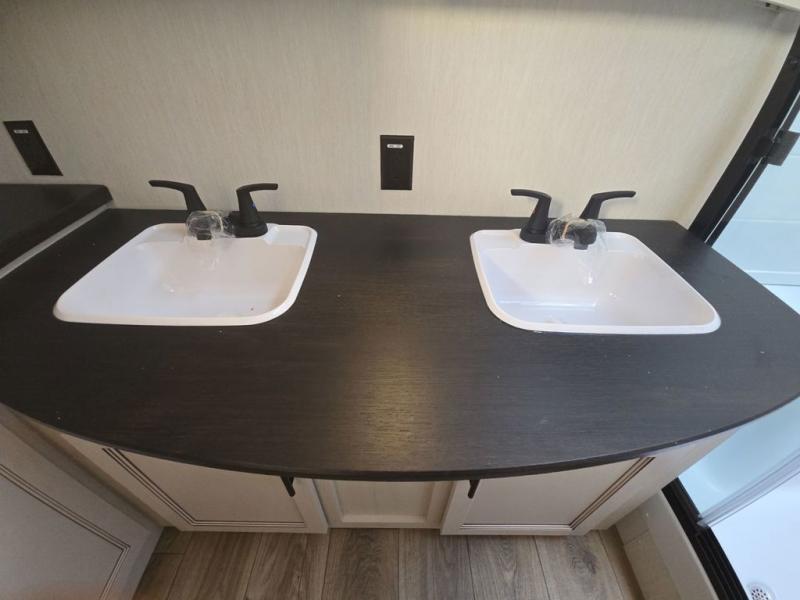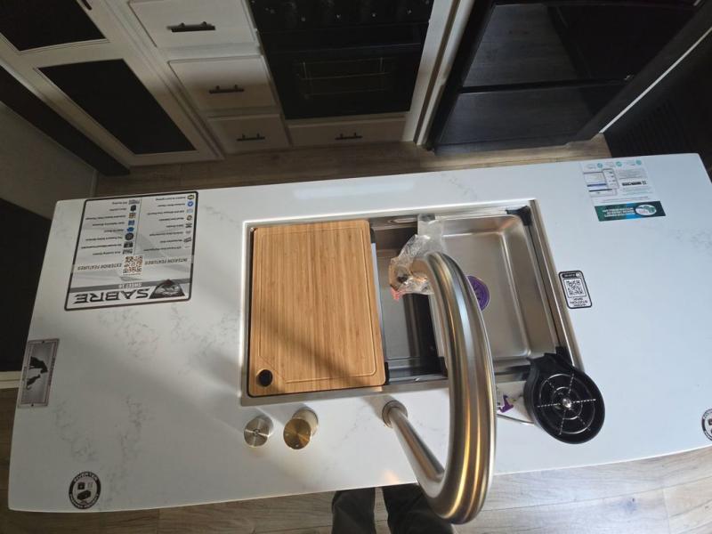 You will experience luxurious camping trips at an affordable price with any one of these Forest River Sabre fifth wheels! These models are durable and ready to travel anytime of the year thanks to features like the high-gloss gel-coat front cap with LED lighting, the PVC roof membrane, and the forced air underbelly with enclosed gate valves. The electric auto-leveling system makes setting up easy and safe, and the adjustable power awning with LED lighting will create an inviting outdoor living space. Each model includes a universal docking station which includes a black tank flush and an outside shower, and detachable and adjustable stable steps for you to enter and exit the unit safely. Inside, you will love the design of the ambient accent lighting in the living area, the real wood lumbercore cabinetry, and the linoleum flooring!